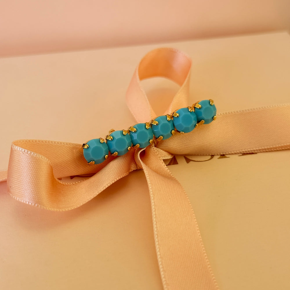 Turquoise preciosa crystals gold plated brooch