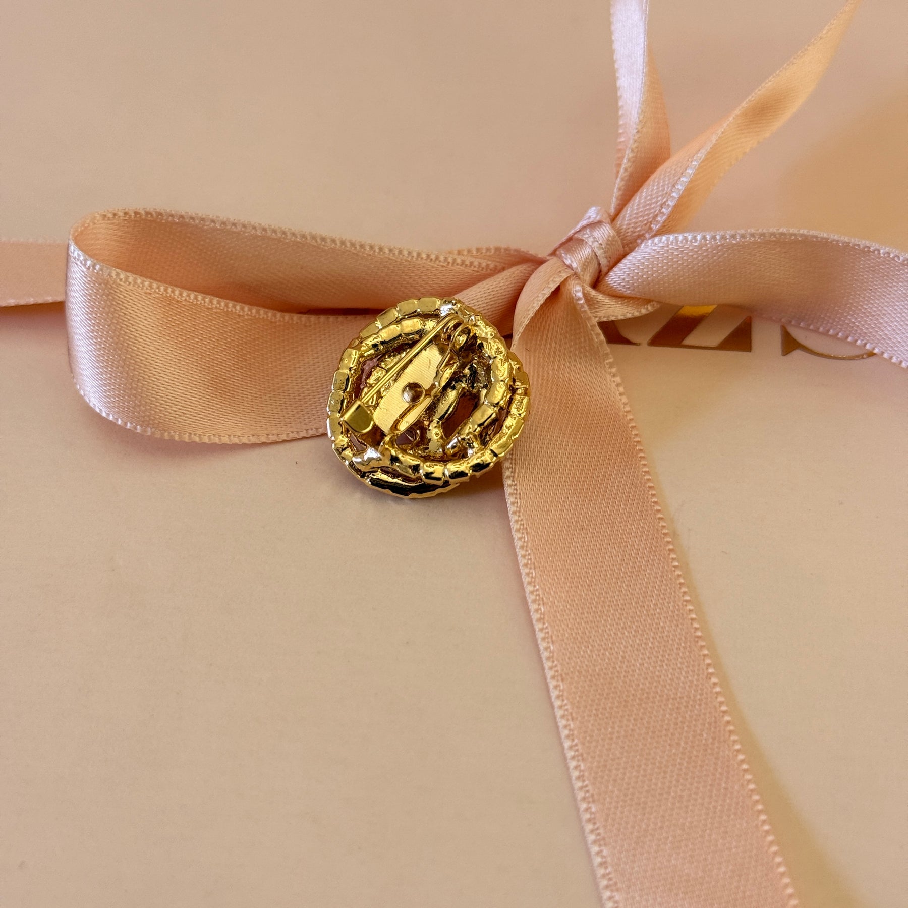 Elevate your style with this exquisite Round Orange Preciosa Crystals Gold Plated Brooch. Its dainty design shines with vibrant orange crystals, making it a perfect accessory for any occasion. Wear it to add a touch of elegance and sparkle that speaks to your unique spirit!