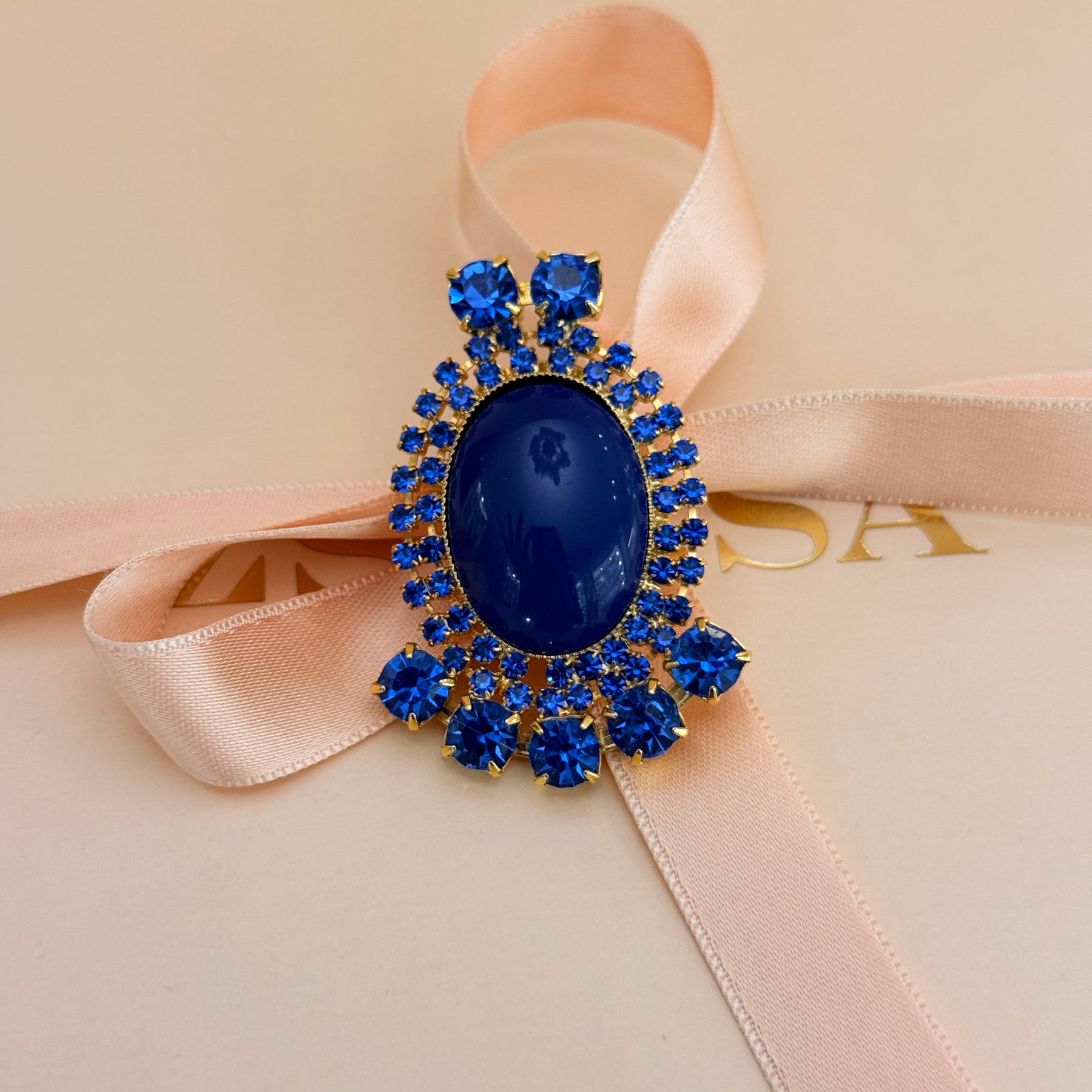 Elevate your style with the Royal Blue Preciosa Crystals Gold Plated Brooch! This stunning piece features eye-catching royal blue crystals set in luxurious gold plating, making it a perfect accessory for any occasion. Let your individuality shine as you adorn your outfits with this exquisite symbol of elegance and charm!