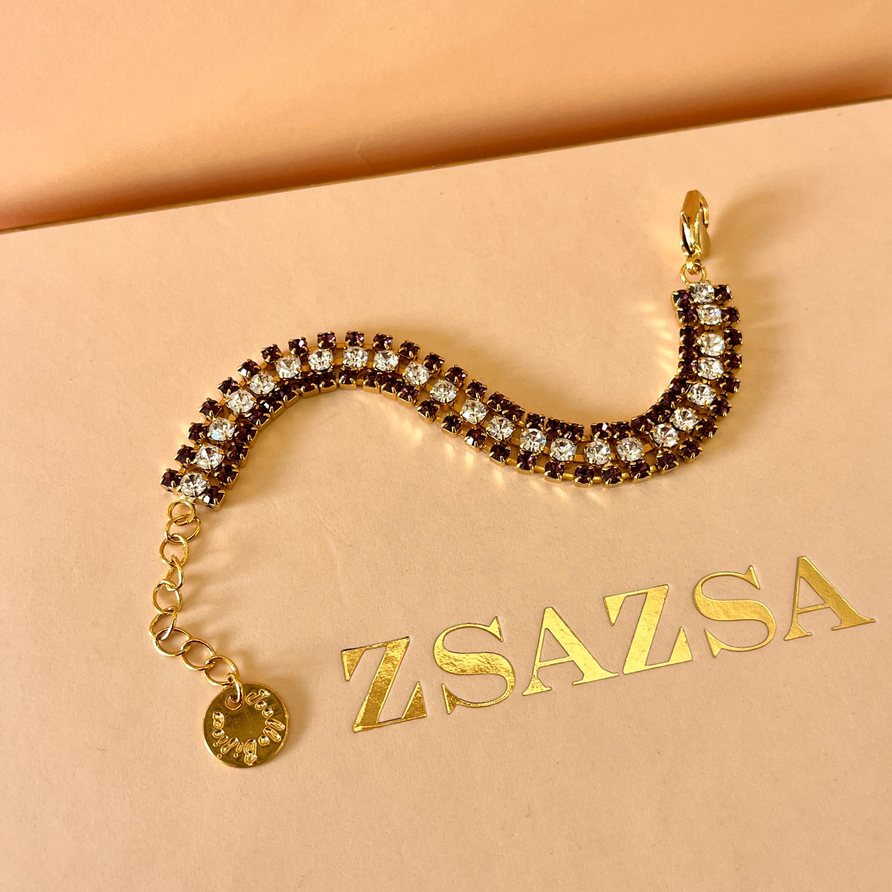 This exquisite 3 rows bracelet features stunning purple preciosa crystals, delicately set in a gold plated design. Elevate any outfit with this statement piece that exudes elegance and style. Perfect for any occasion, this bracelet is sure to turn heads and make you feel confident and radiant.