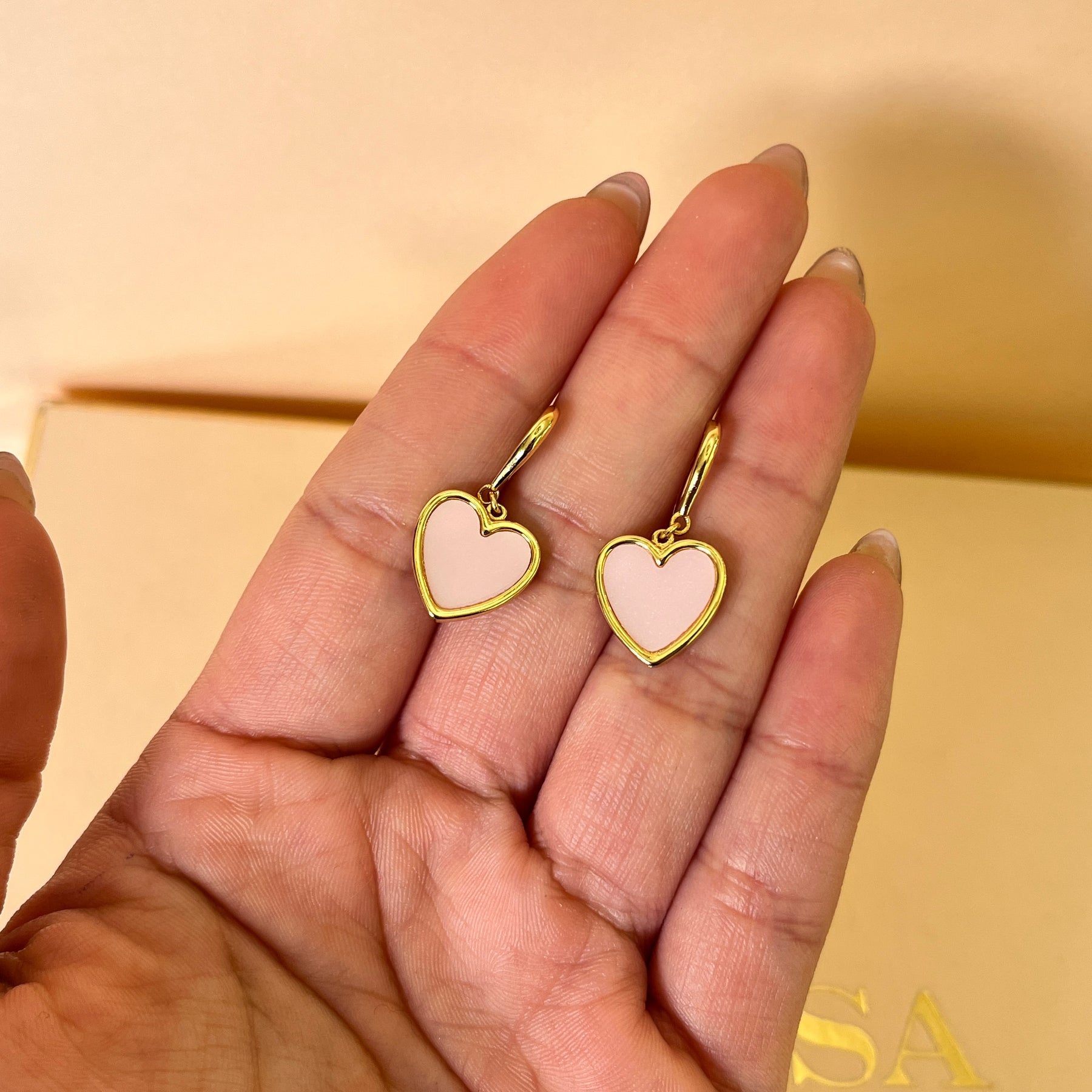 Light pink heart gold plated hooks