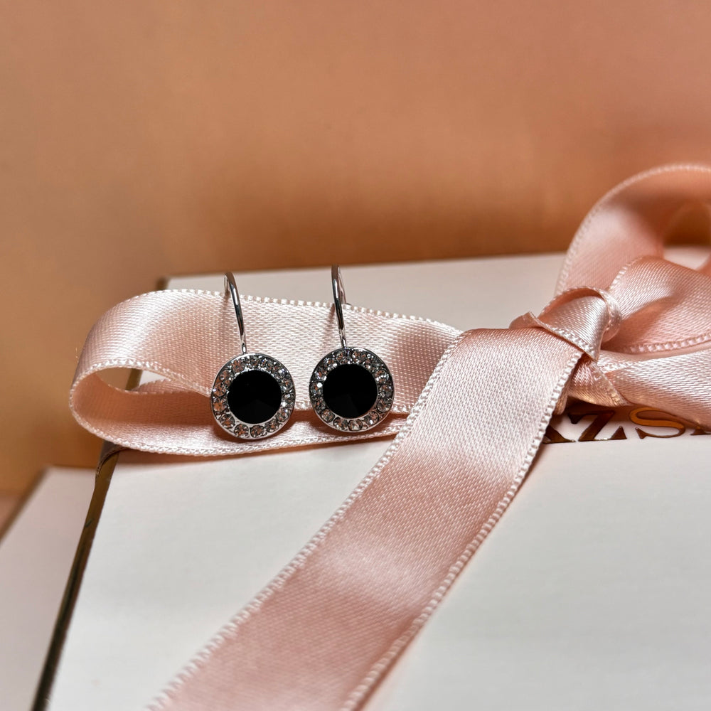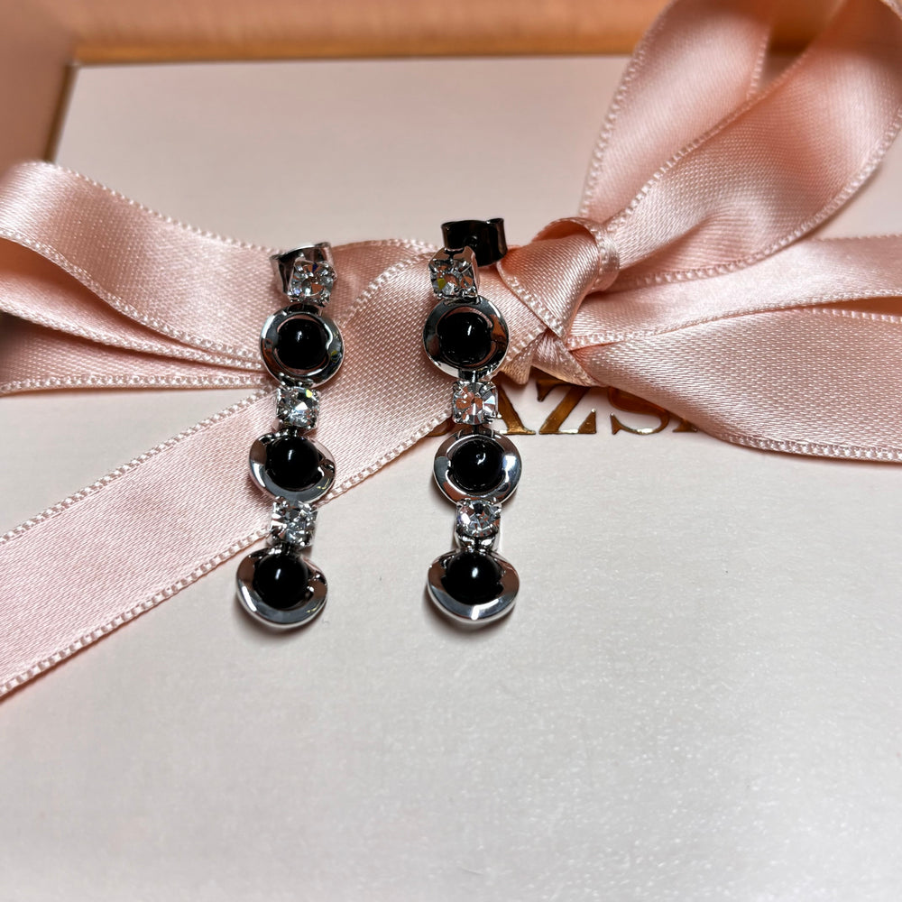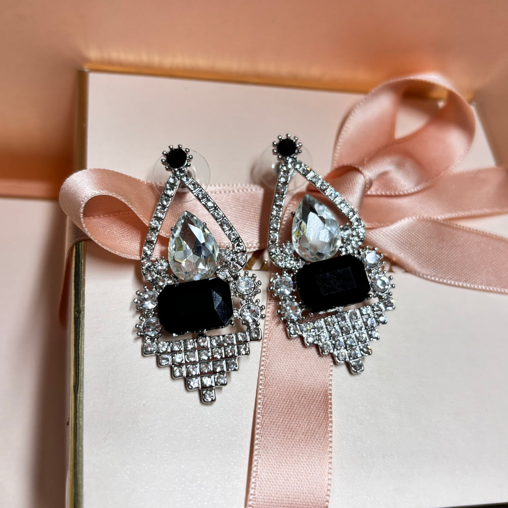 Black rhinestone silver earrings