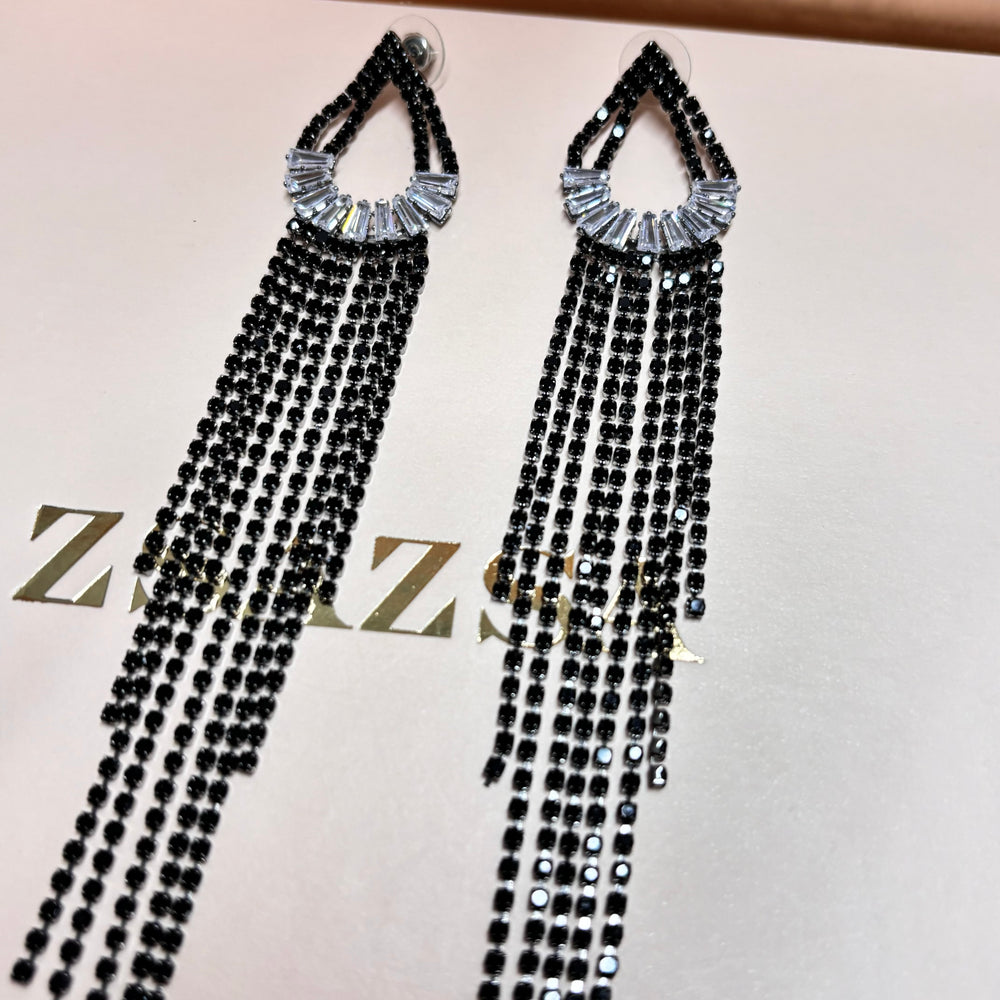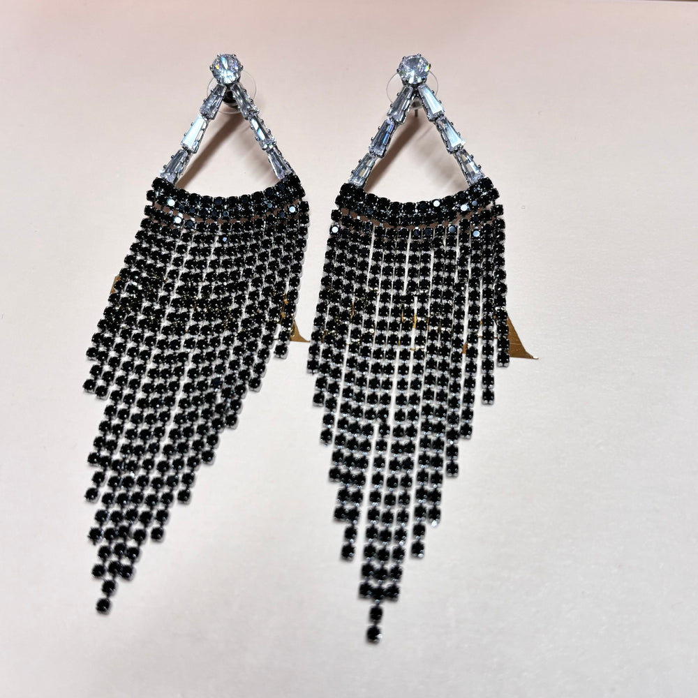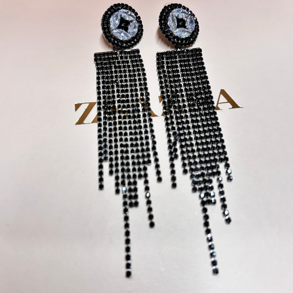 Black rhinestone long earrings