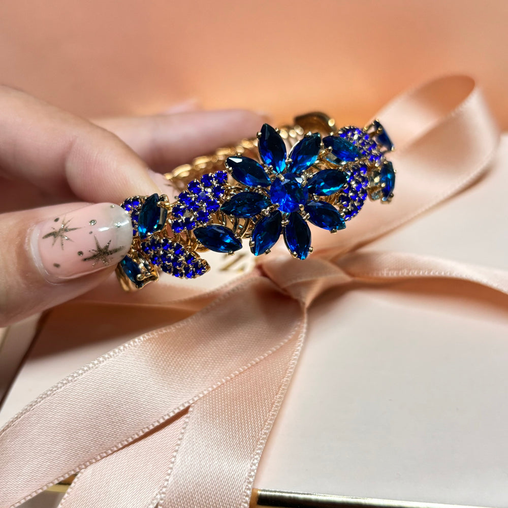 Flower royal blue rhinestone bangle