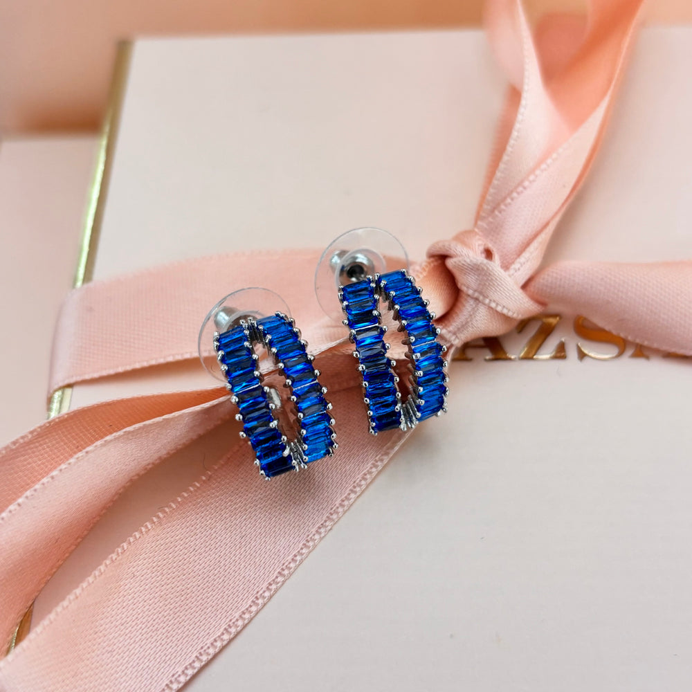 White rhinestone baguette gold plated hoops