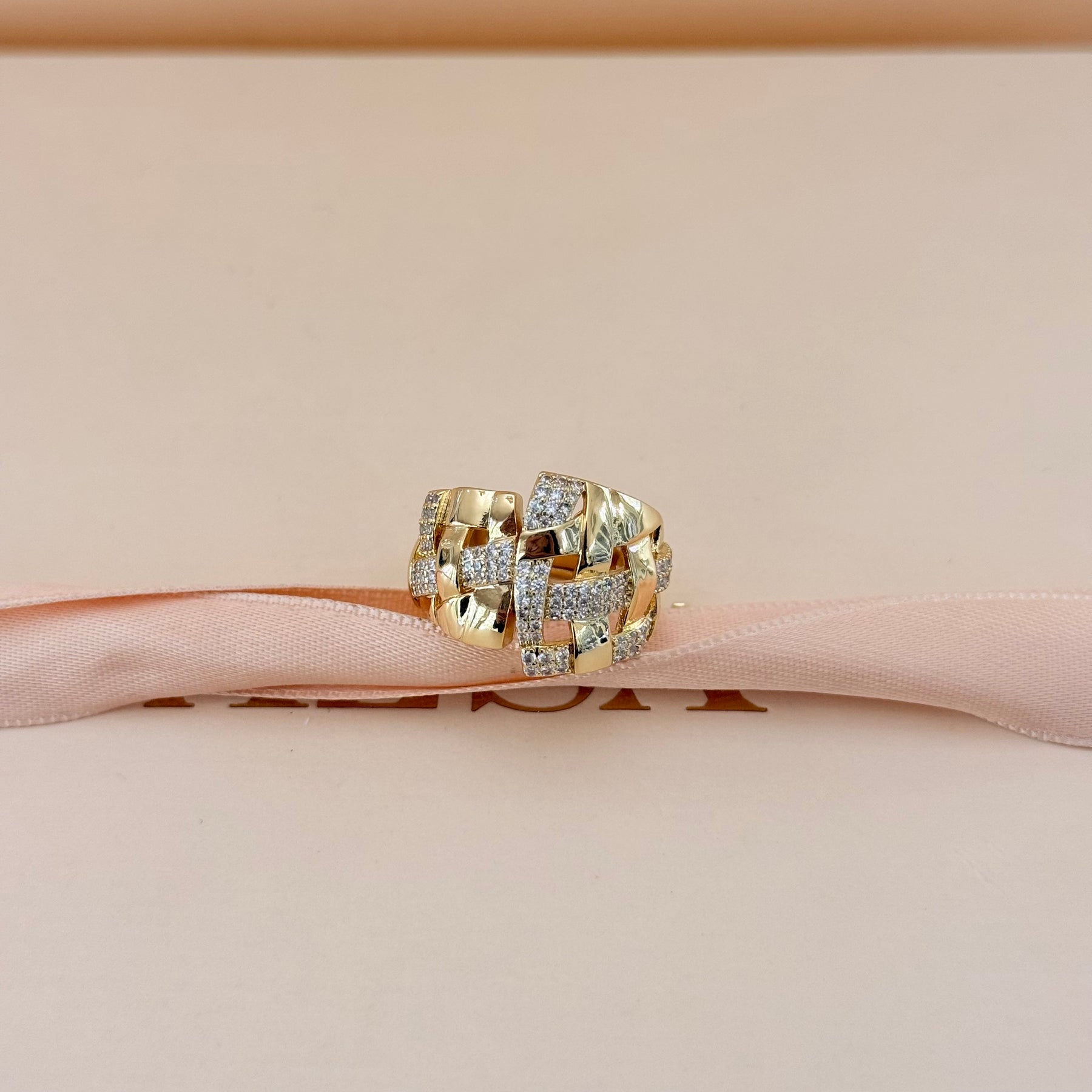 Elevate your style with our Grid zircone gold plated ring. Featuring a striking grid design and sparkling zircone stones, this adjustable ring is perfect for any occasion. Make a statement as a guest or add a touch of beauty to your everyday look.