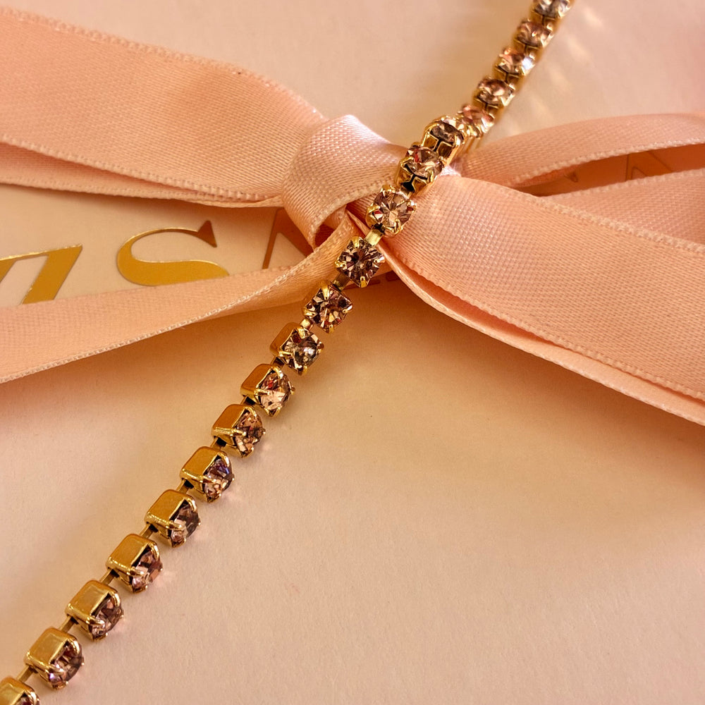 Elevate your style with our dainty Peach Swarovski crystals bracelet. Made with genuine Swarovski crystals and intricately crafted in a delicate gold plated design, this bracelet adds a touch of elegance to any outfit. Stand out in a sea of ordinary with this must-have accessory!