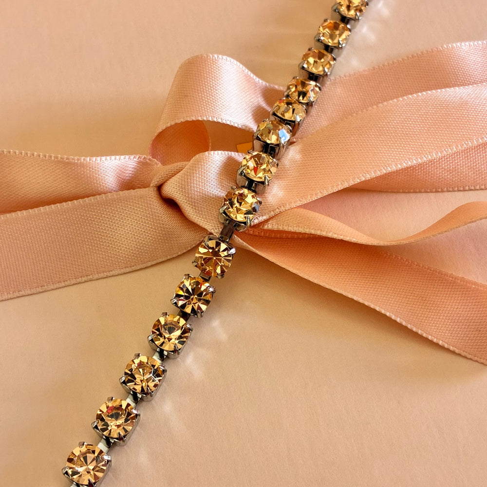 Elevate your style with our Peach Preciosa crystals bracelet. The stunning peach crystals catch the light perfectly and add a touch of elegance to any look. Perfect for any occasion, this bracelet will make you stand out and feel confident. Upgrade your accessory game now!