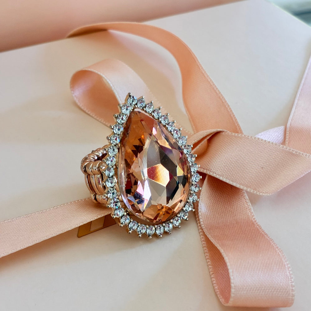 Teardrop peach rhinestone elasticated ring