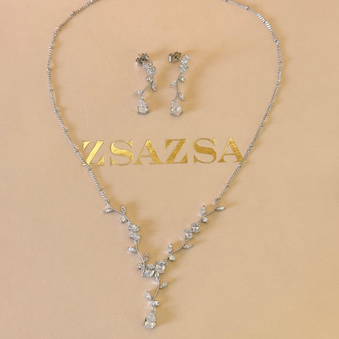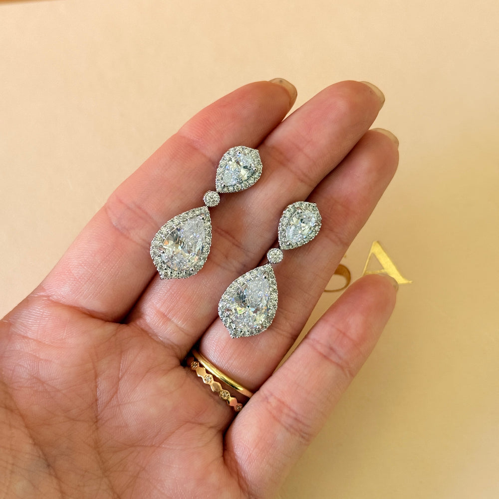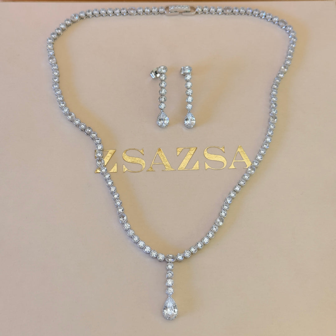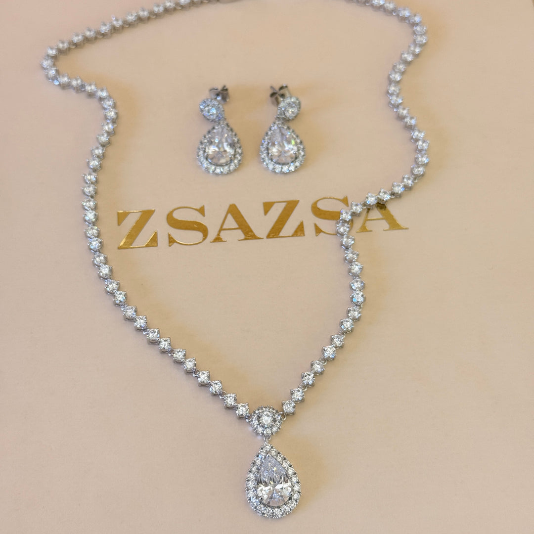 Dainty teardrop zircone silver set