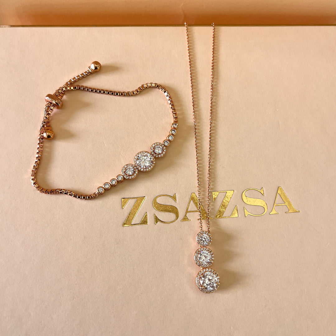 Round zircone rose gold plated pendant and bracelet