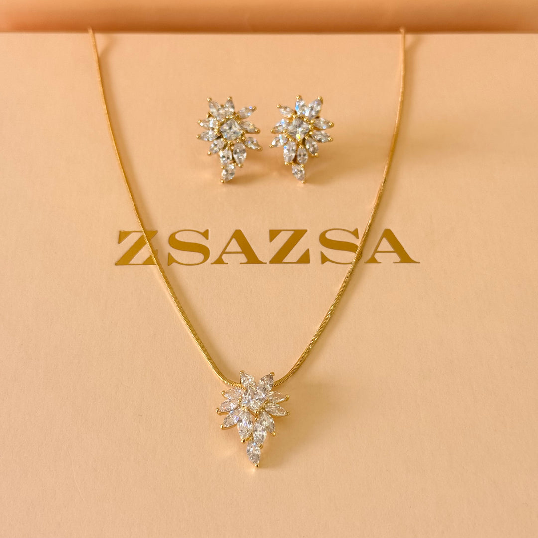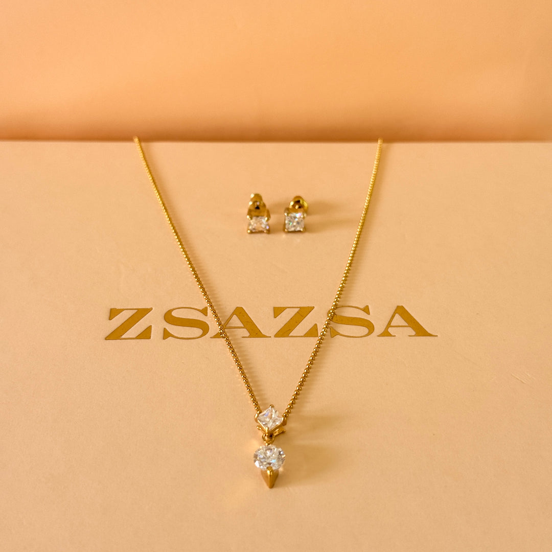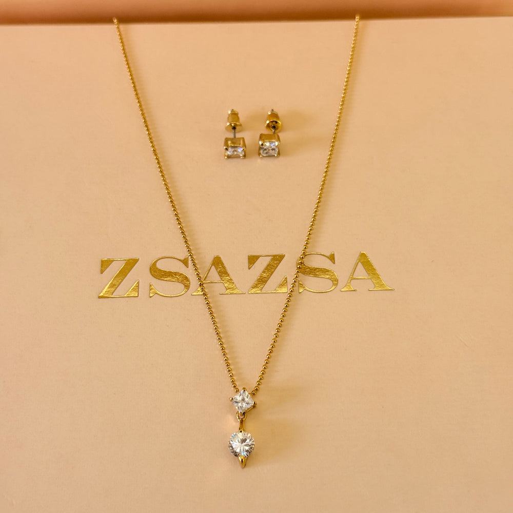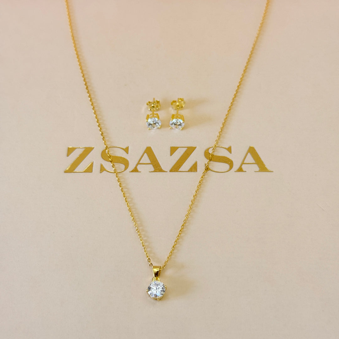 Dainty zircone gold plated pendant set
