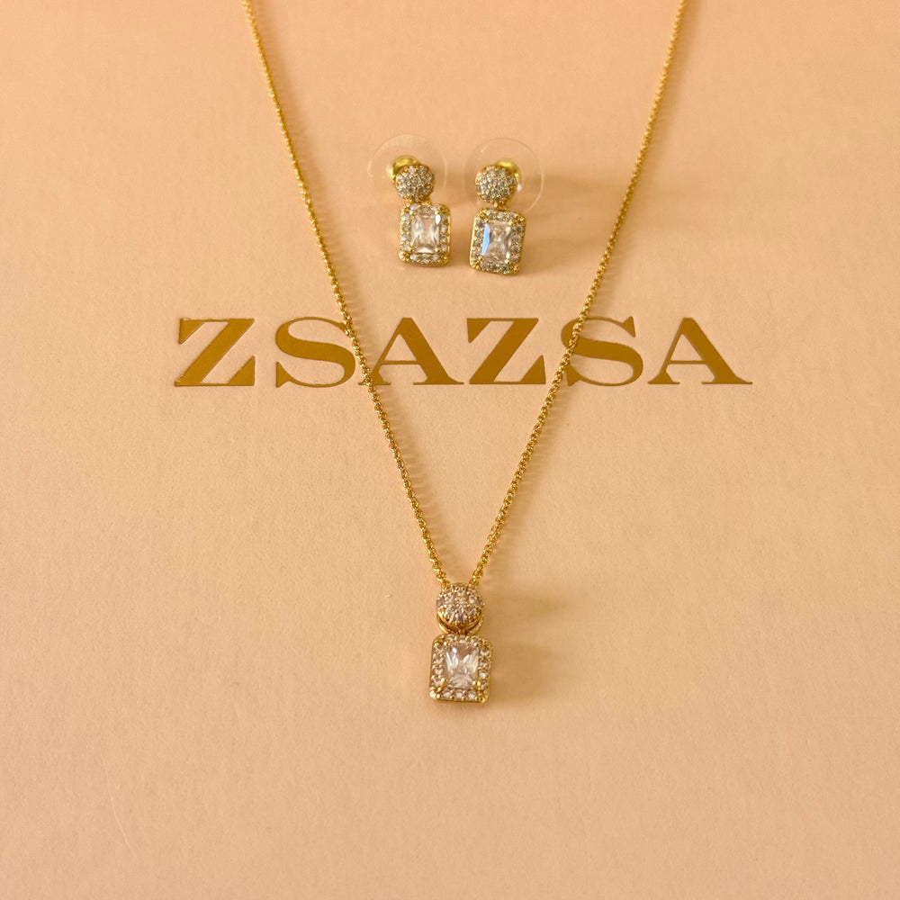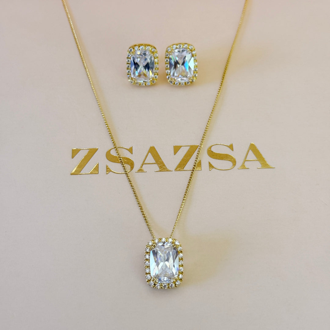 Rectangular zircone gold plated pendant set