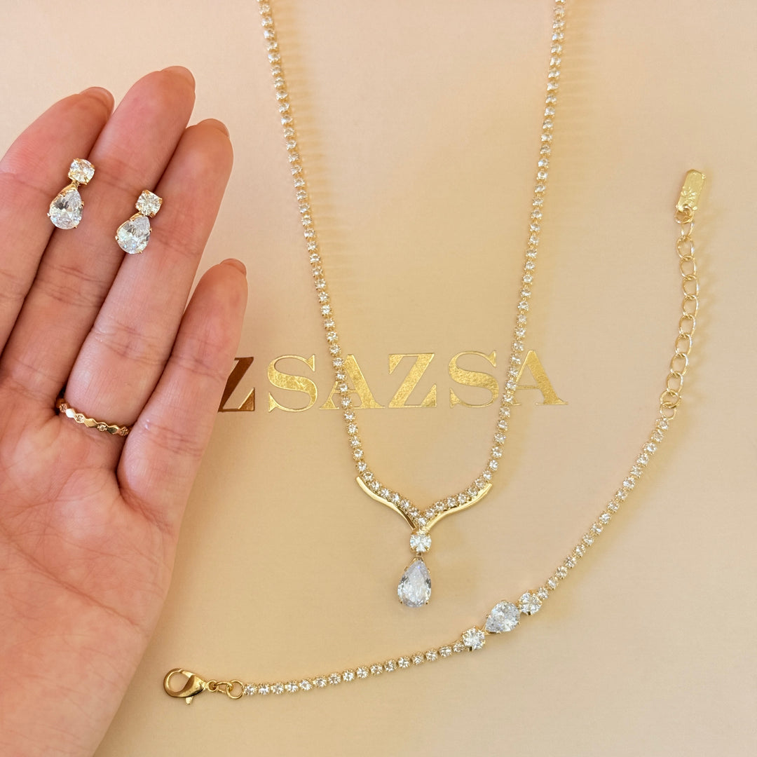Teardrop zircone gold plated set