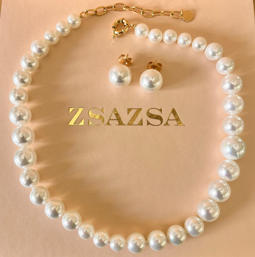 White Mallorca pearls gold plated set