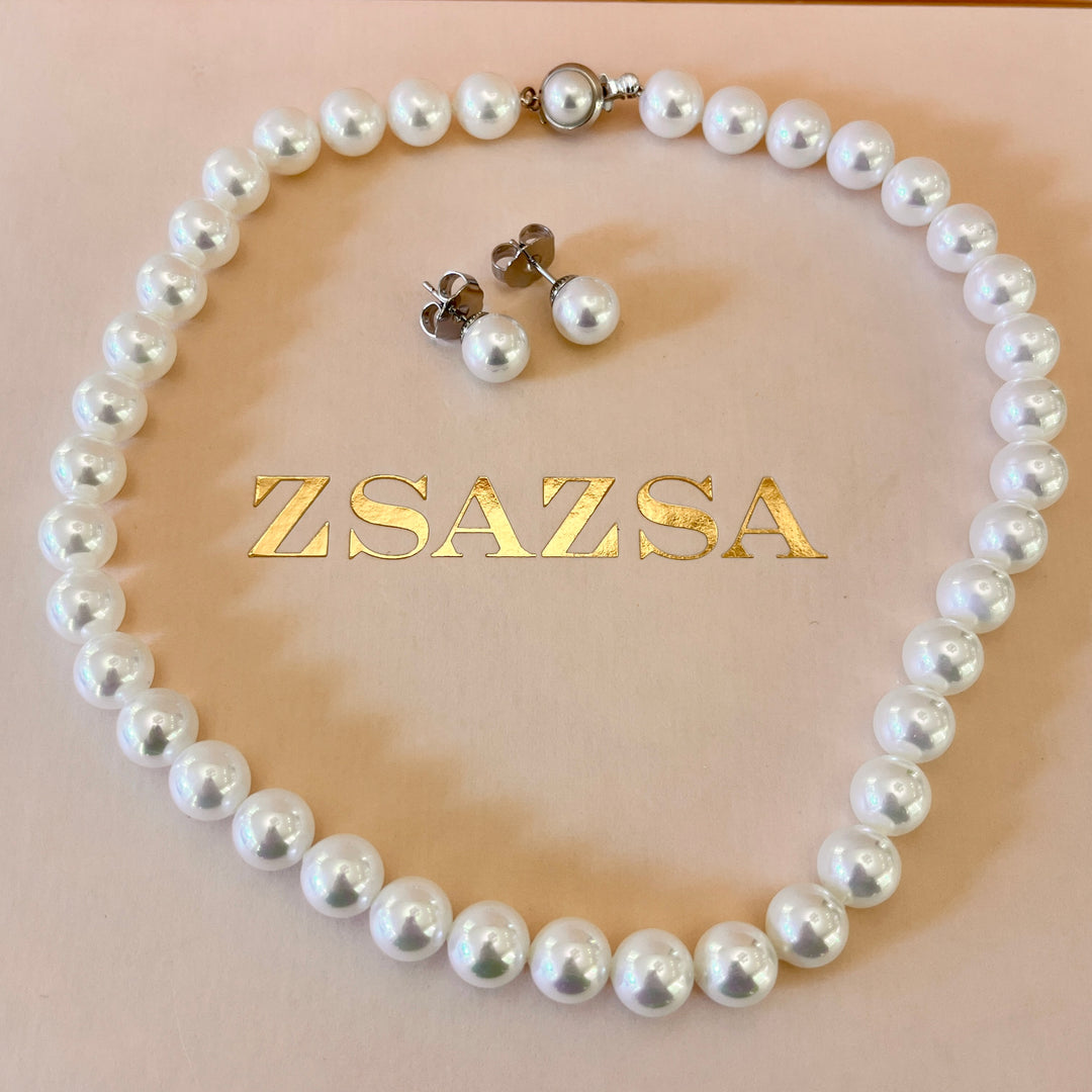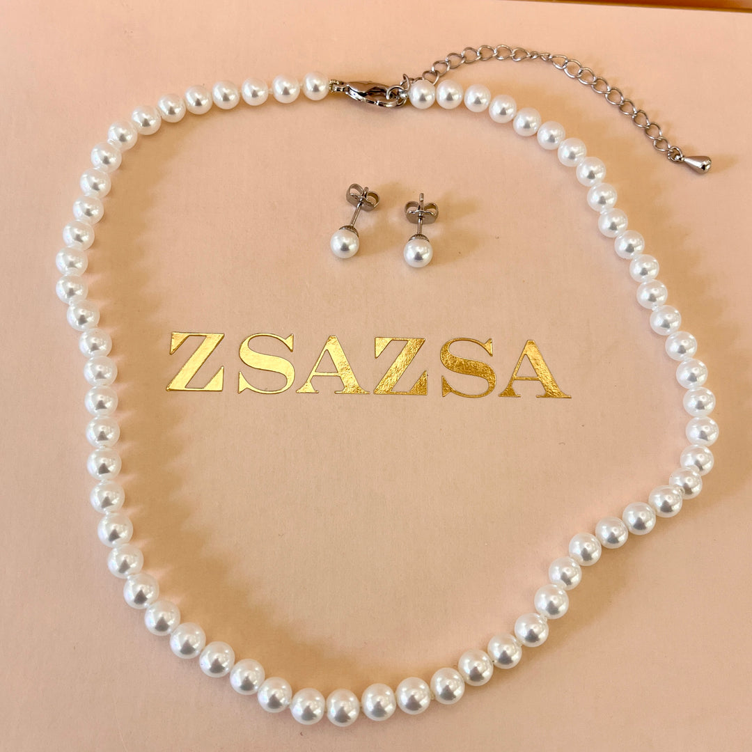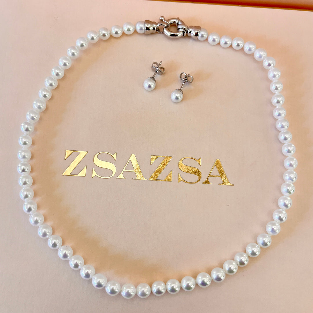White Mallorca pearls white gold plated set
