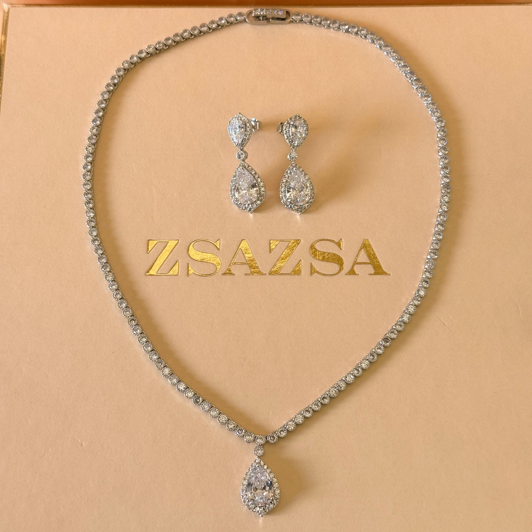 Teardrop zircone silver set