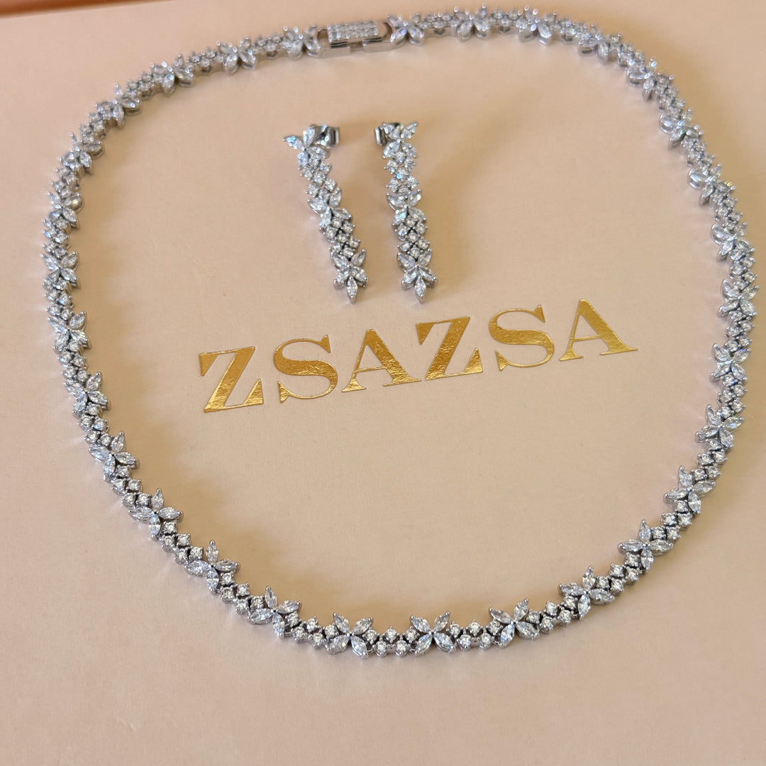 Flower and teardrop zircone silver set