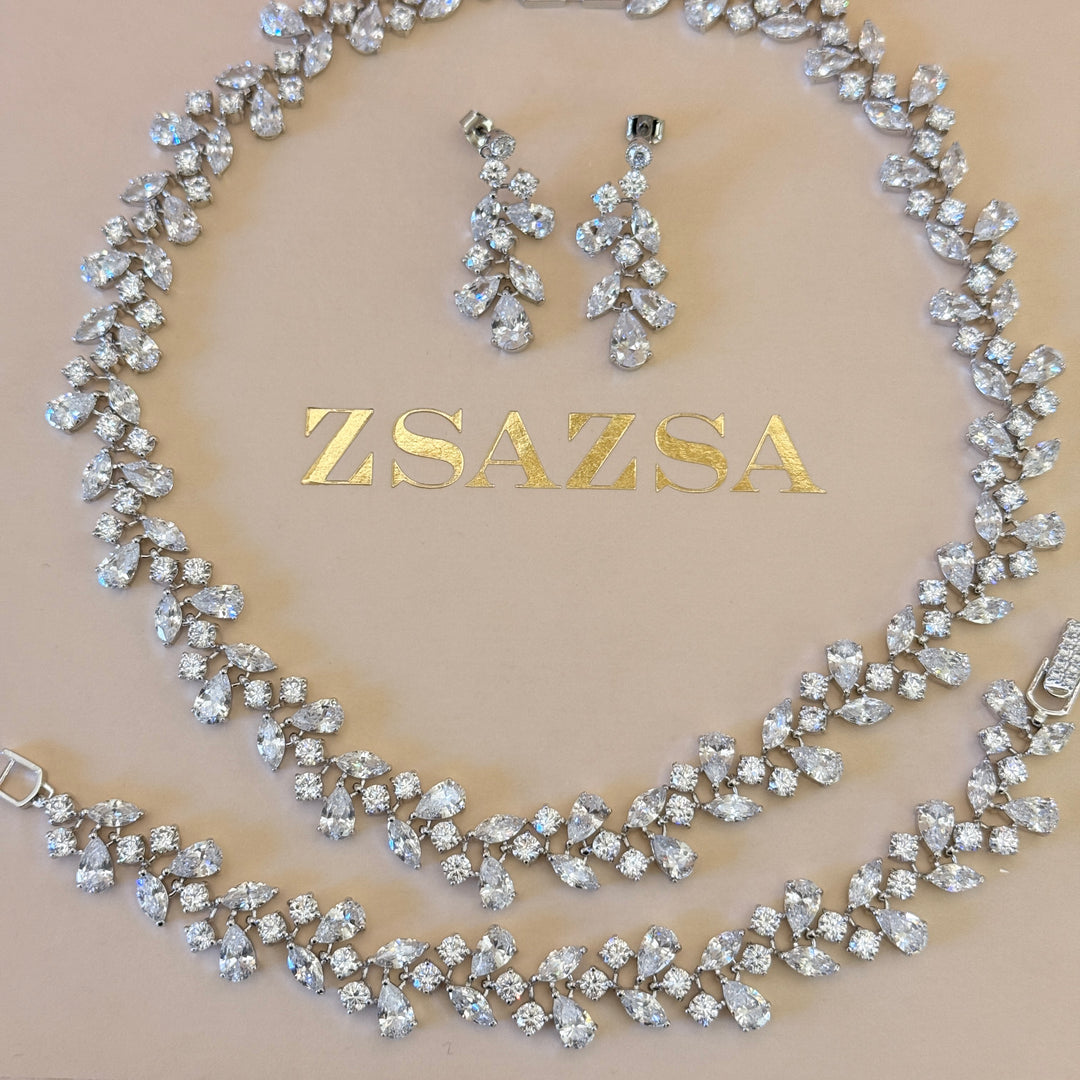 Marquise and teardrop dainty zircone silver set
