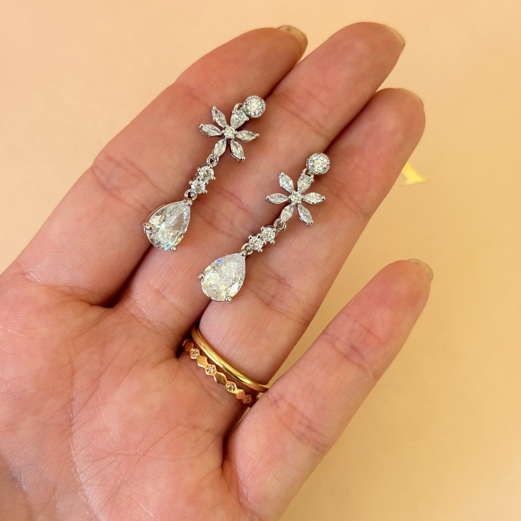Enhance your elegance with the Flower and Teardrop Zircone Silver Set. Featuring beautiful flower and marquise designs, this white gold plated set is perfect for weddings or special occasions. Feel radiant as a bride, adding a touch of sophistication to your look on your special day.