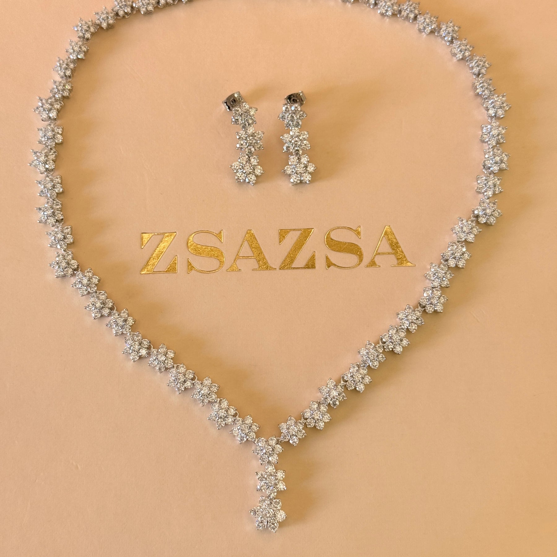 The Flower Zircone Silver Set features exquisite floral designs crafted from high-quality zircone. This elegant jewelry set, plated in white gold, is ideal for weddings and special occasions, providing a sophisticated touch for brides. Its design harmonizes with various styles, enhancing overall aesthetics.