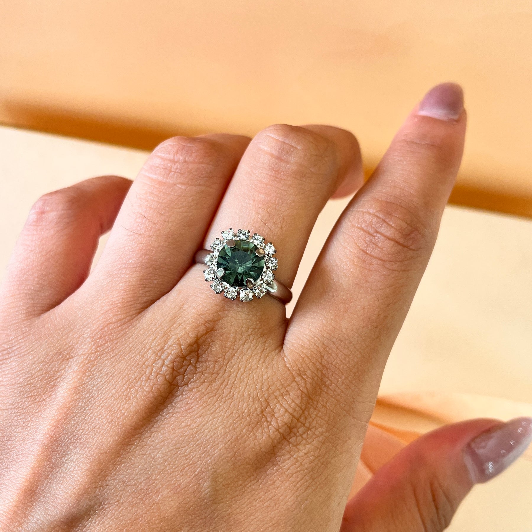 Indulge in the beauty of nature with our grey preciosa Crystals Set! The delicate flower design, adorned with stunning grey preciosa crystals, exudes elegance and charm. Made with white gold plated materials, this set includes studs, pendant, and ring - the perfect addition to any dainty style.