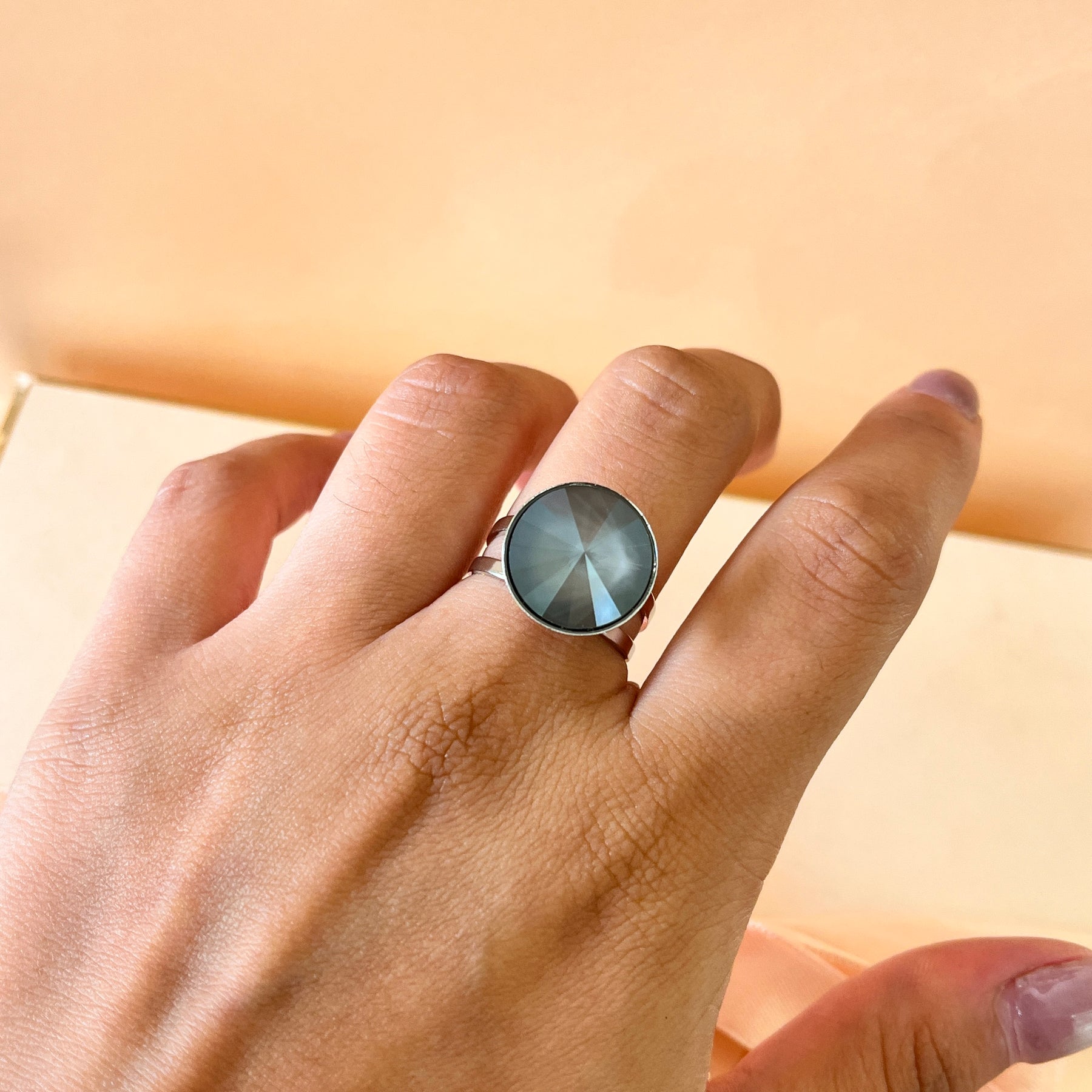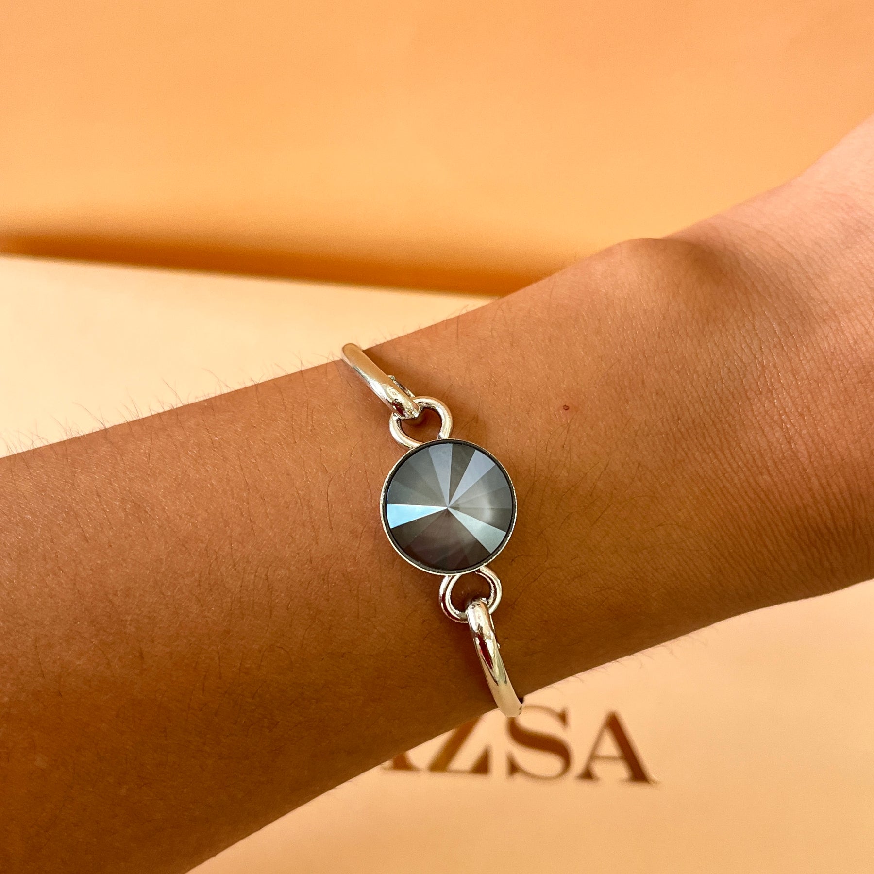 Add a touch of vibrant elegance to your look with our grey Swarovski crystals set. Crafted with grey round crystals, these stunning pieces include hooks, pendant, bracelet and an adjustable ring, all plated in white gold. Elevate any outfit with this dazzling set and bask in the luxurious beauty of Swarovski crystals.