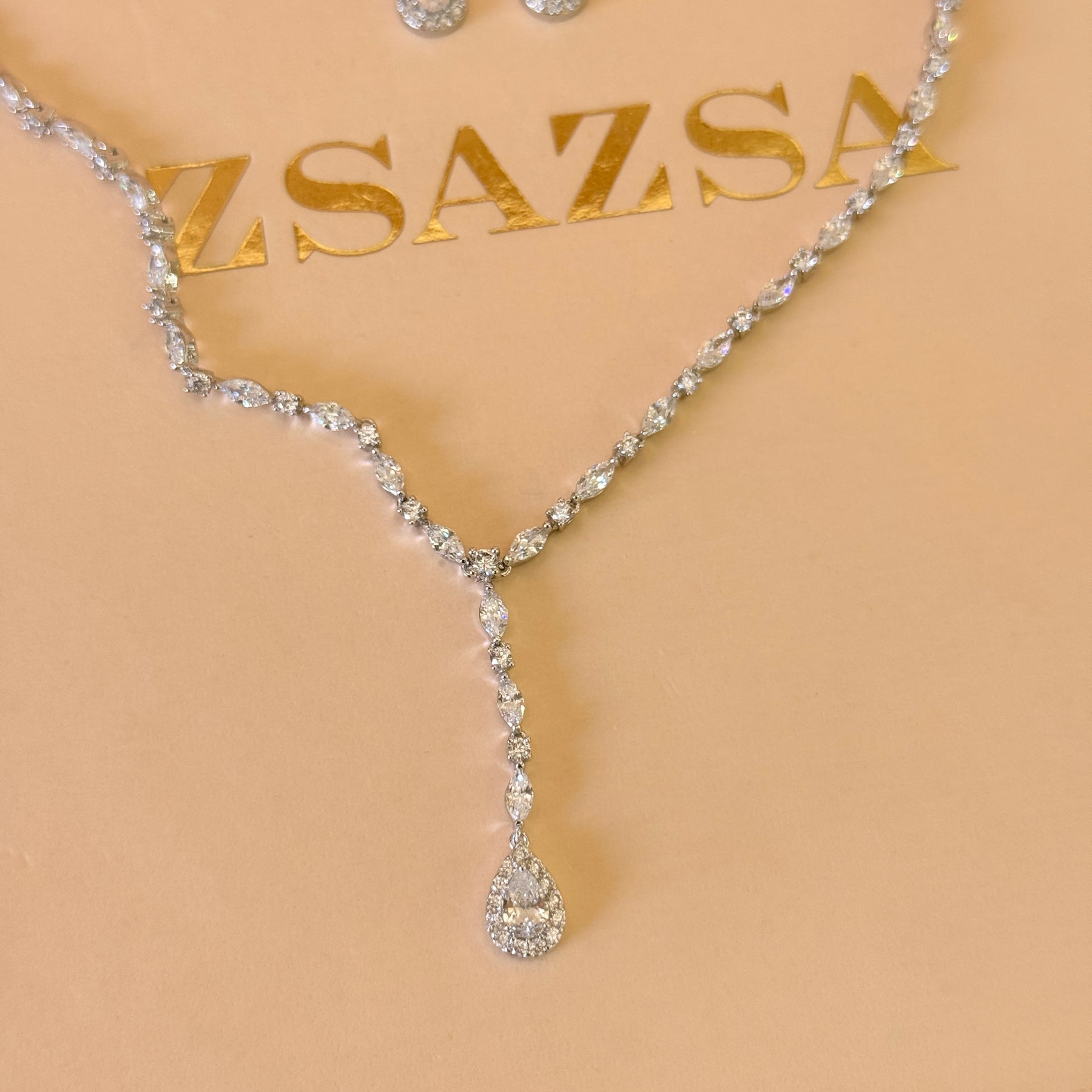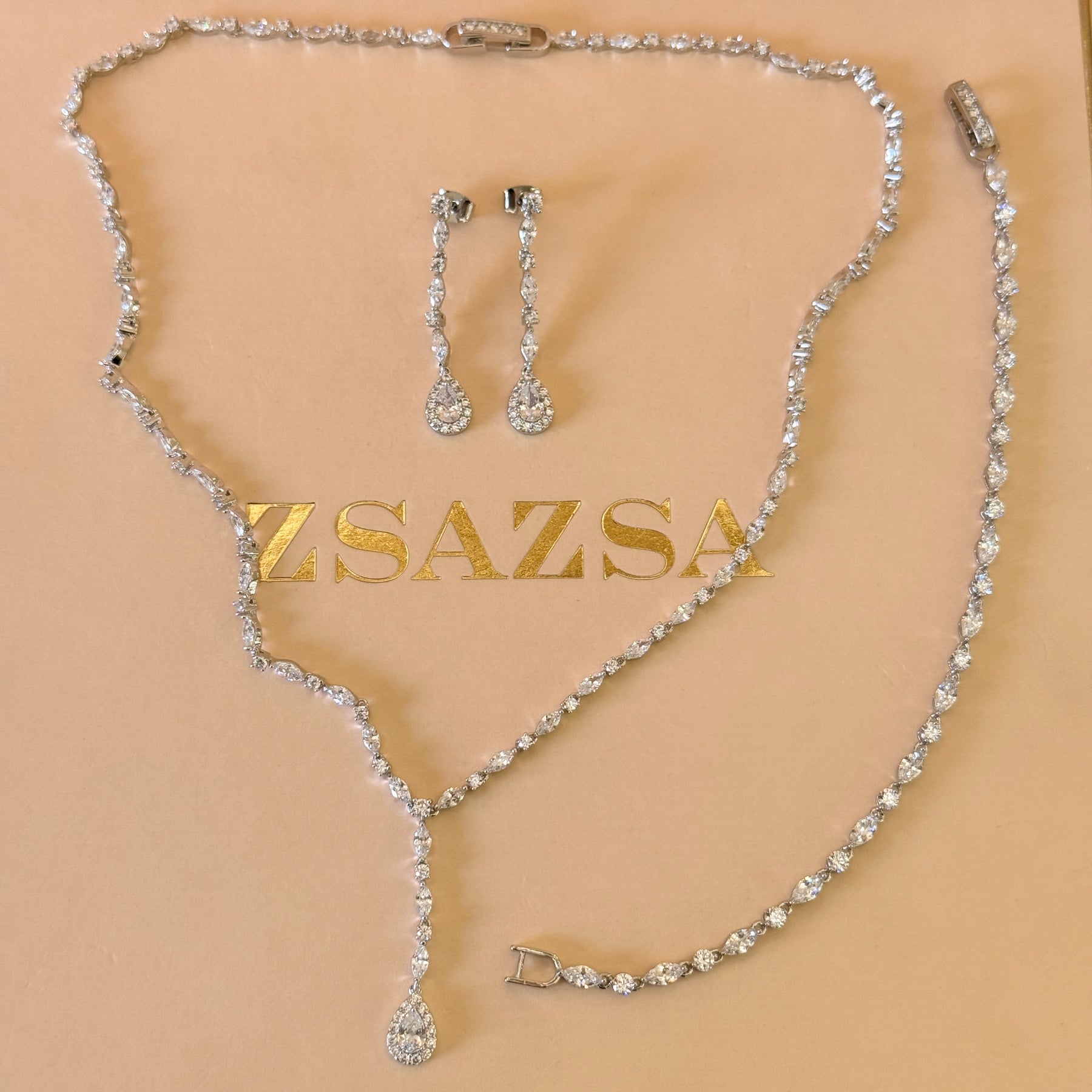 Marquise and teardrop dainty zircone silver set