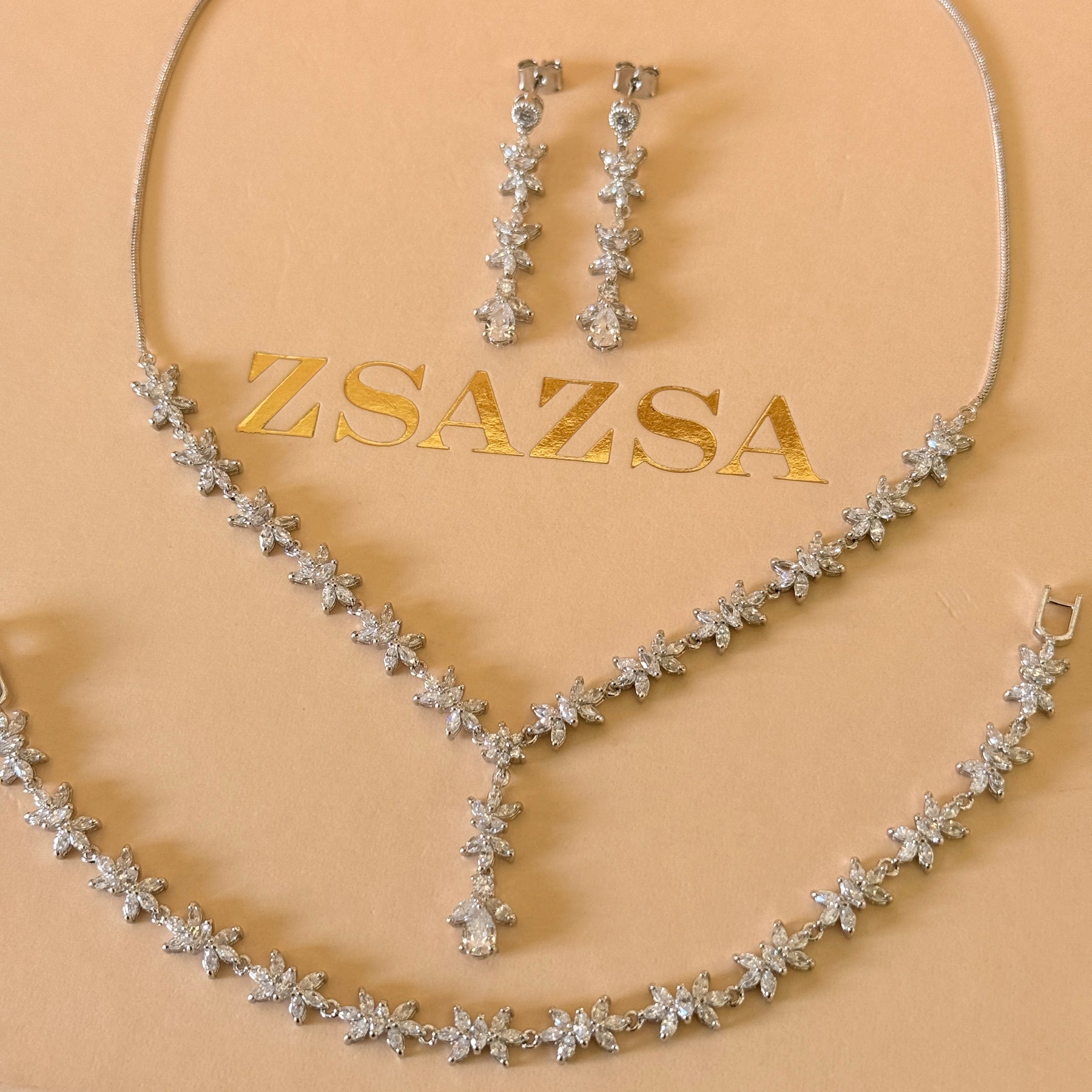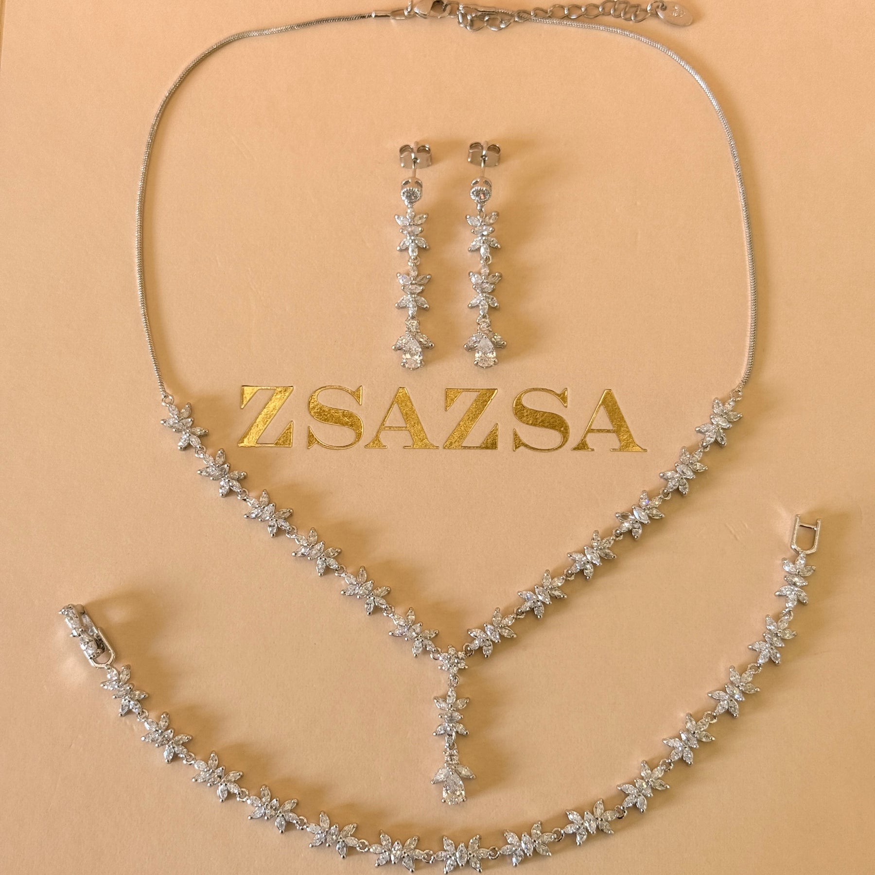 Elevate your elegance with the Marquise and Teardrop Zircone Silver Set. Crafted with stunning white gold plating, this set features beautiful marquise and teardrop designs, making it perfect for weddings or special occasions. Its simple sophistication ensures you shine without overwhelming your look.