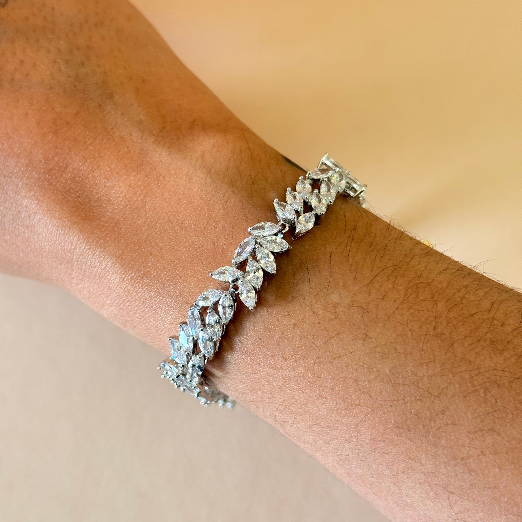 The Marquise Zircone Silver Set features high-quality marquise zircone stones, elegantly presented within a white gold plated framework. This set is ideal for special occasions such as weddings, enhancing the attire of brides and mothers of the bride or groom with its sophisticated design. Its durable construction ensures long-lasting wear.