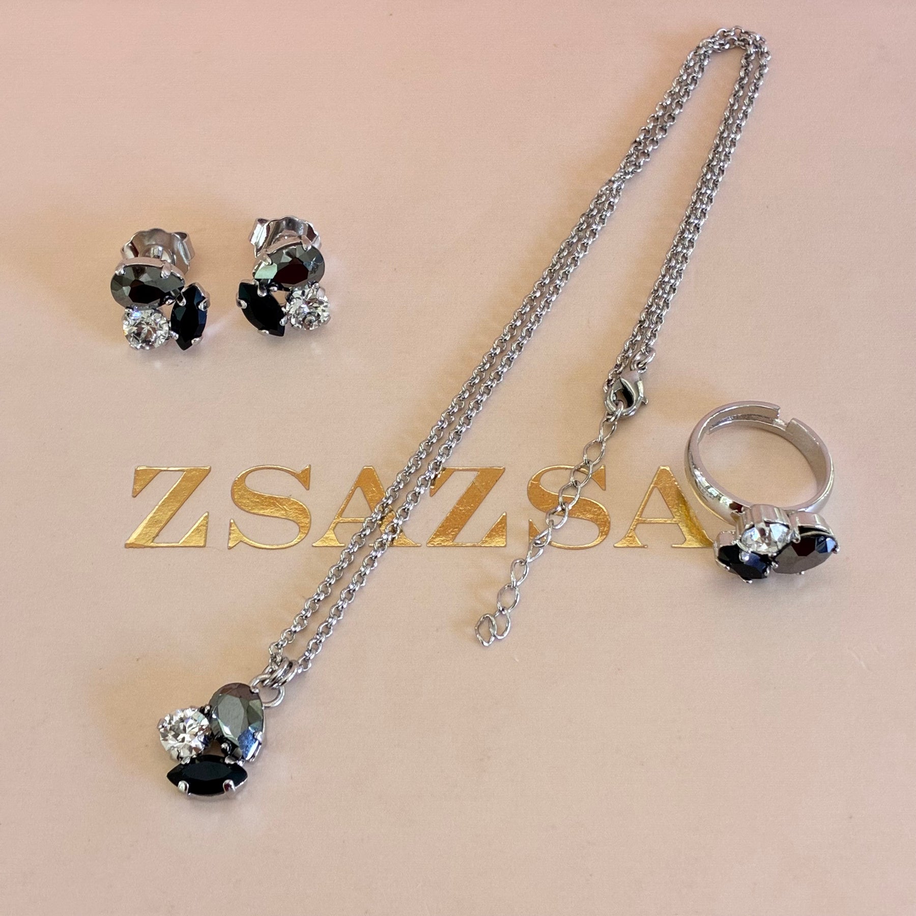 This elegant and dainty set features multistone black, grey, and clear Swarovski crystals in different shapes. With a variety of stones, this set will add a touch of sophistication to any outfit. Expertly crafted with the highest quality materials, this set is perfect for any occasion.