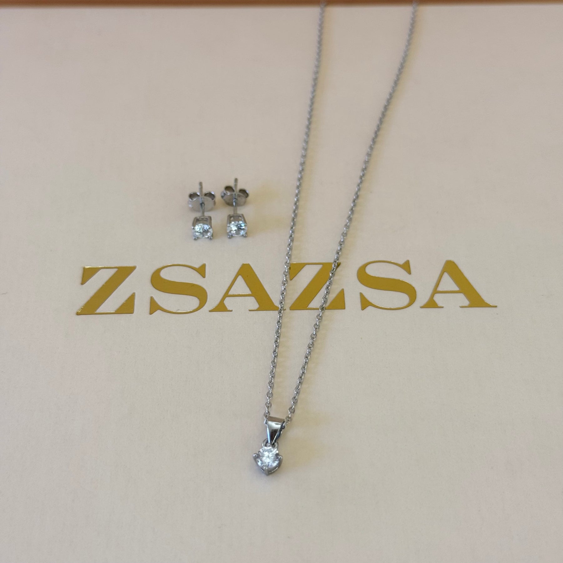 Elevate your style with the Solitaire Zircone Sterling Silver Set. Its simple yet elegant design makes it a perfect accessory for any occasion. Crafted from durable sterling silver, this set complements your look effortlessly and adds a touch of sparkle to your day. You'll feel confident and beautiful wearing it!