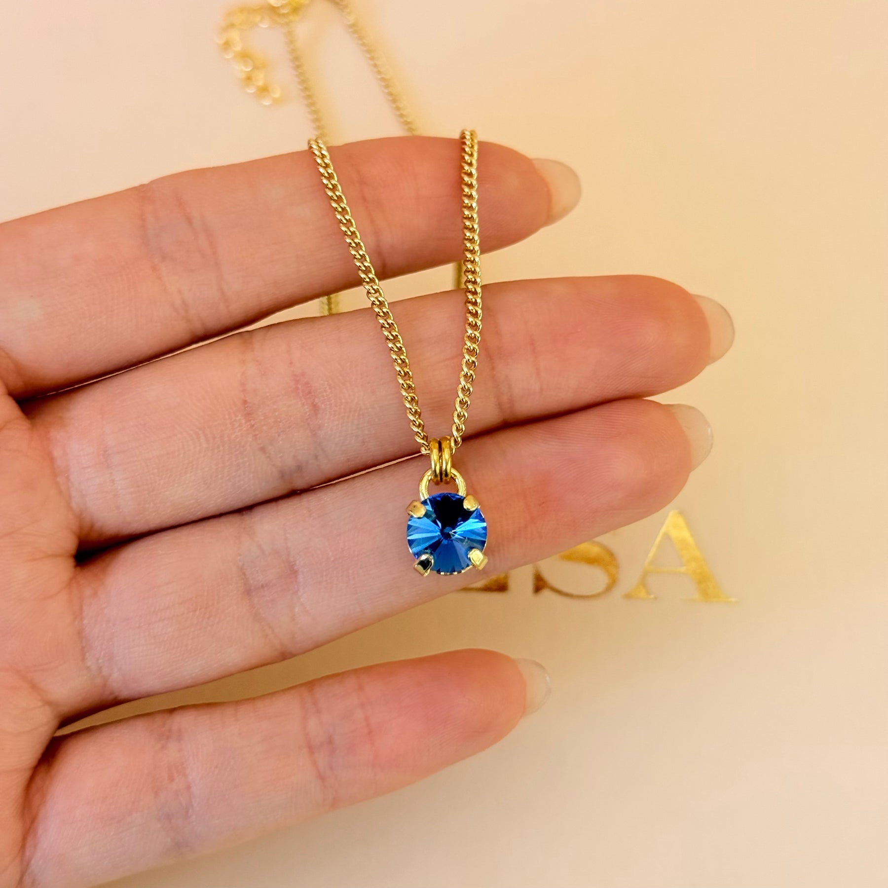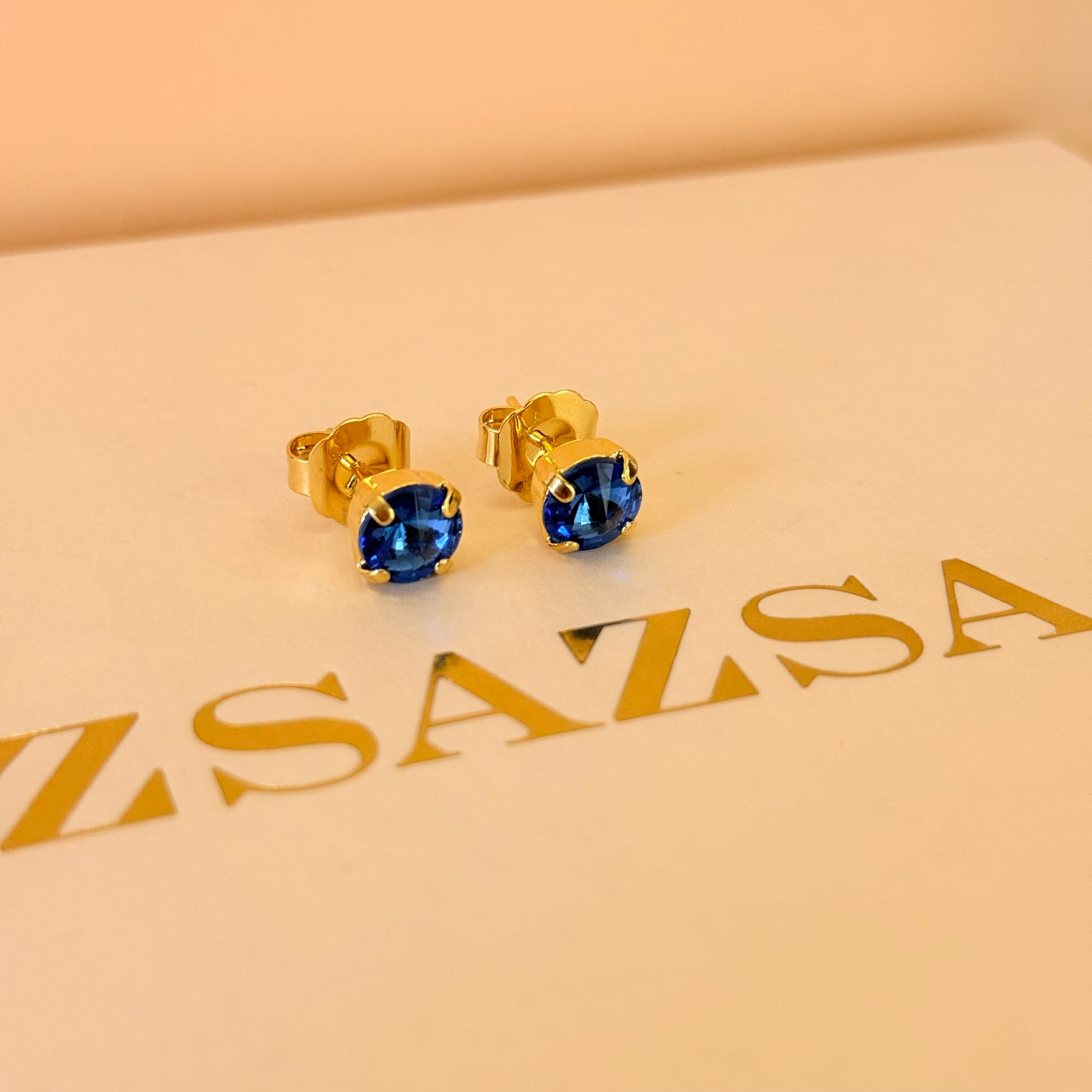 Elevate your style with our Royal blue gold plated solitaire set. Adorned with sparkling Swarovski crystals, this dainty and nice set is perfect for any occasion. Treat yourself or give it as a thoughtful gift to a loved one.