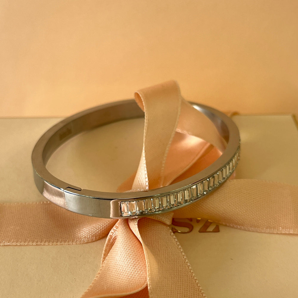 Beautiful stainless steel baguette silver zircone bangle