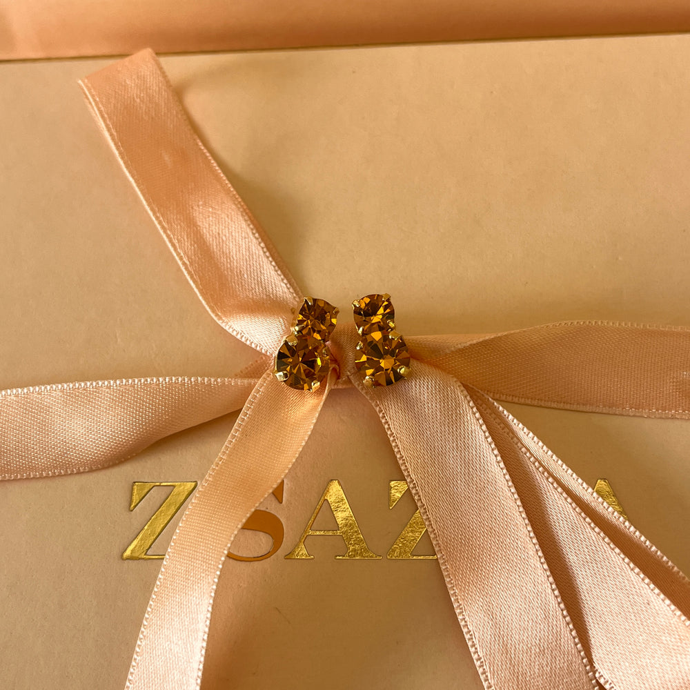 These stunning topaz preciosa crystal studs will add a touch of luxurious elegance to any outfit. With their double stone design and gold plated finish, they are the perfect accessory for both formal and casual occasions. Elevate your style with these dazzling studs!