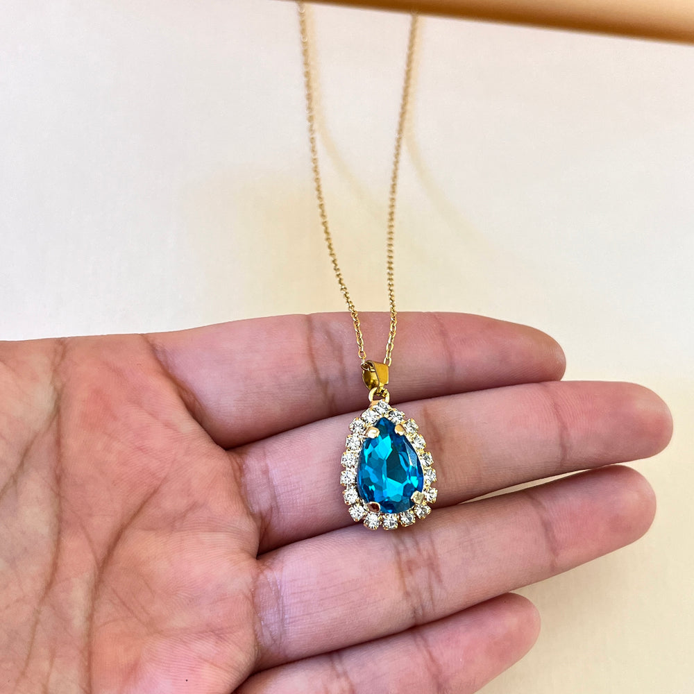 Turquoise teardrop preciosa crystals pendant