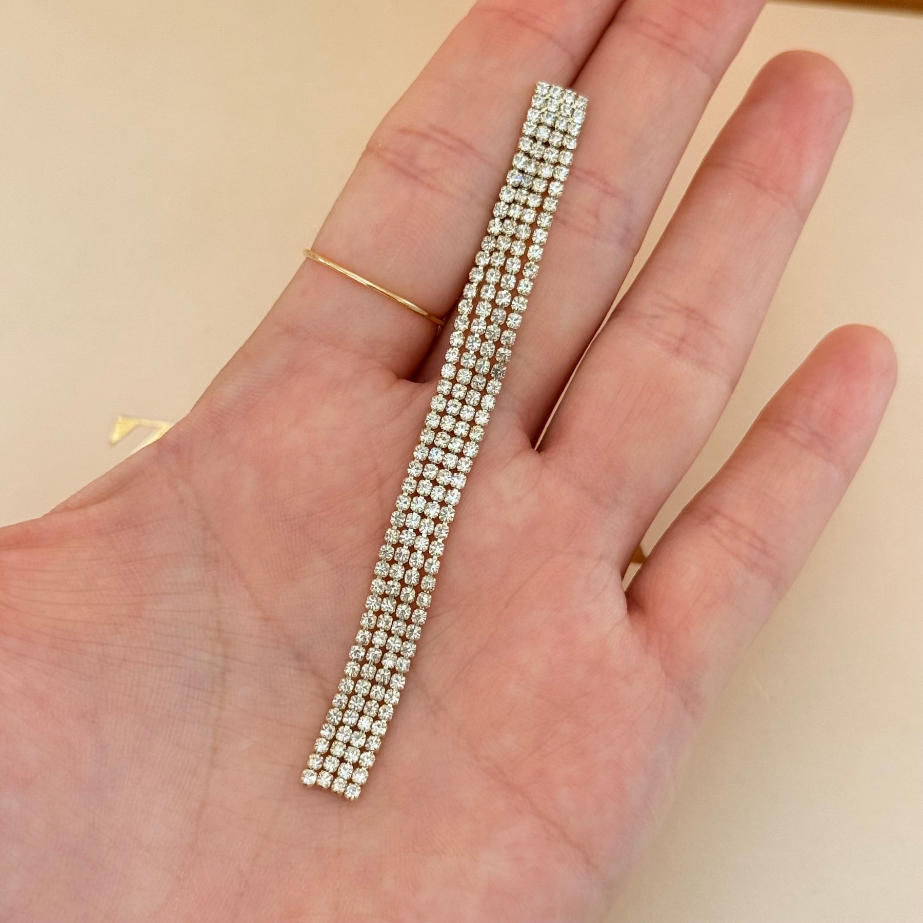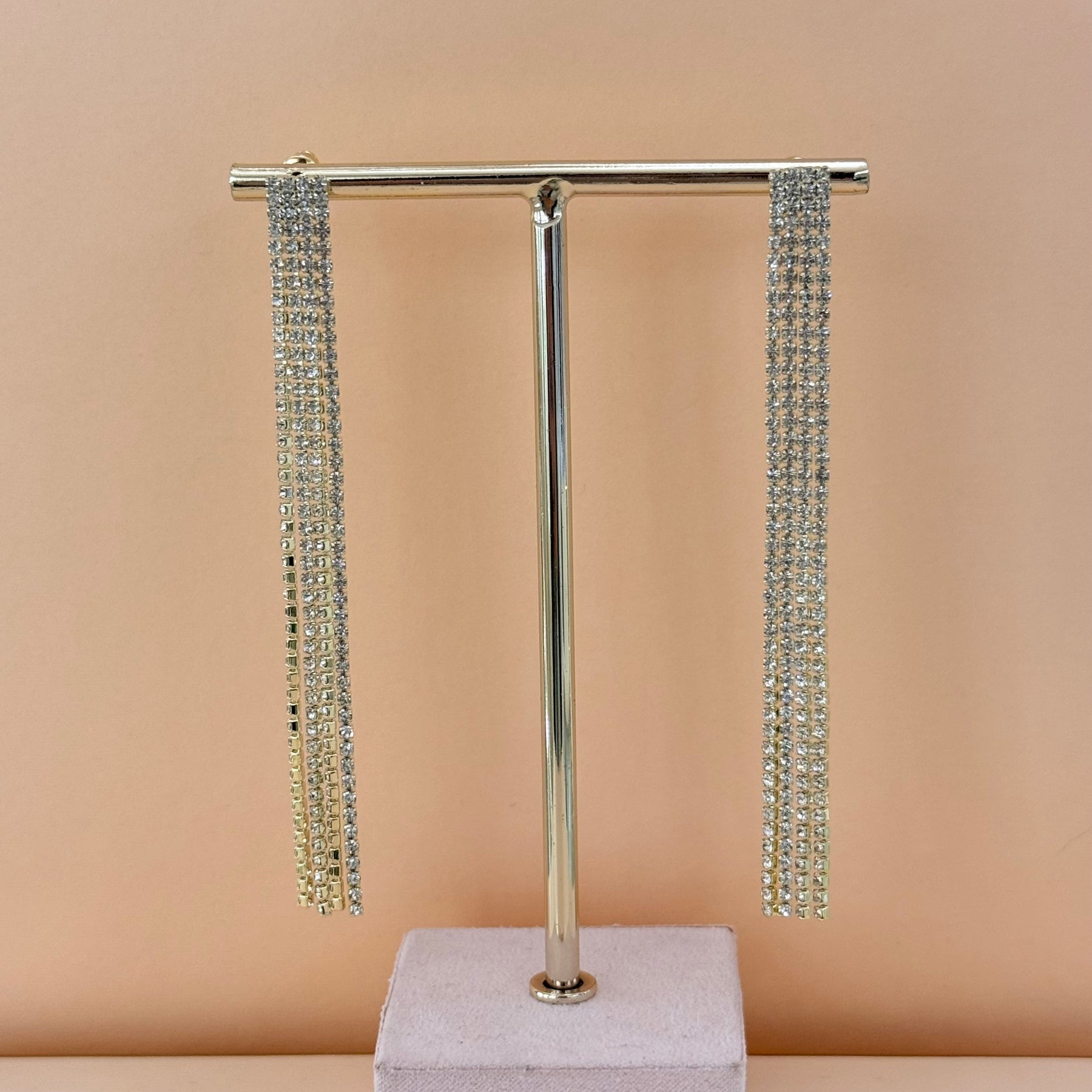 Introducing our long fringe earrings, featuring elegant and eye-catching gold plating with sparkling zircone. Perfect for any special occasion, these earrings will add a touch of glamour to any outfit. Be the star guest at any event with these stunning earrings.
