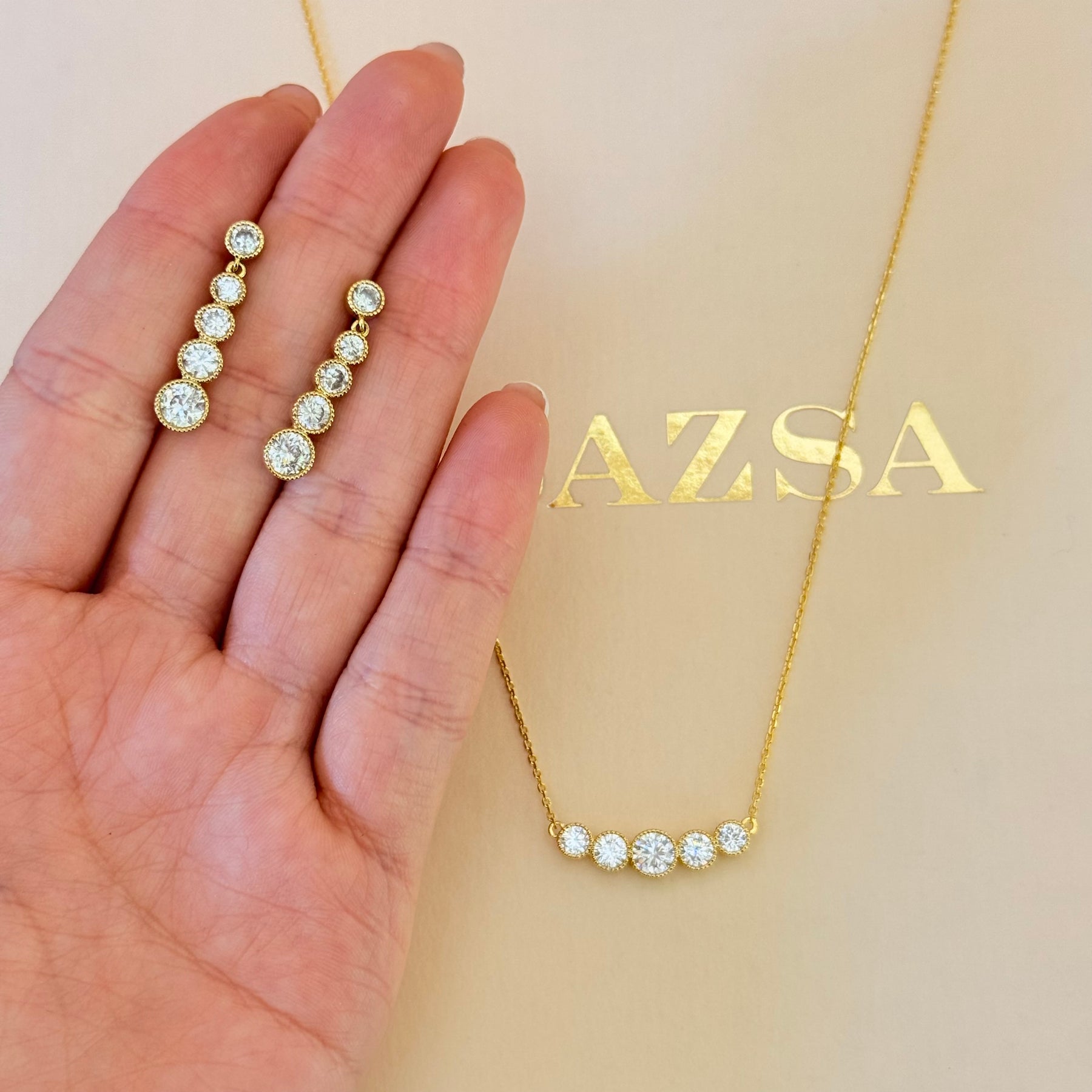 Discover the Rounds Zircone Gold Plated Set, a dainty and elegant addition to your jewelry collection. Perfect for everyday wear or special occasions, this set adds a touch of sophistication while being lightweight and comfortable. Embrace a timeless look that complements any outfit effortlessly.