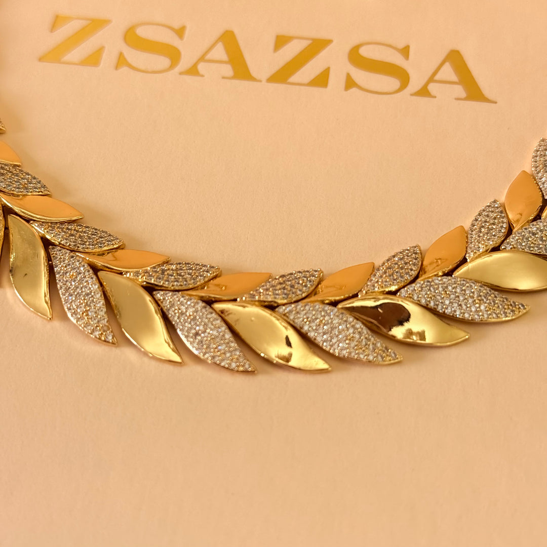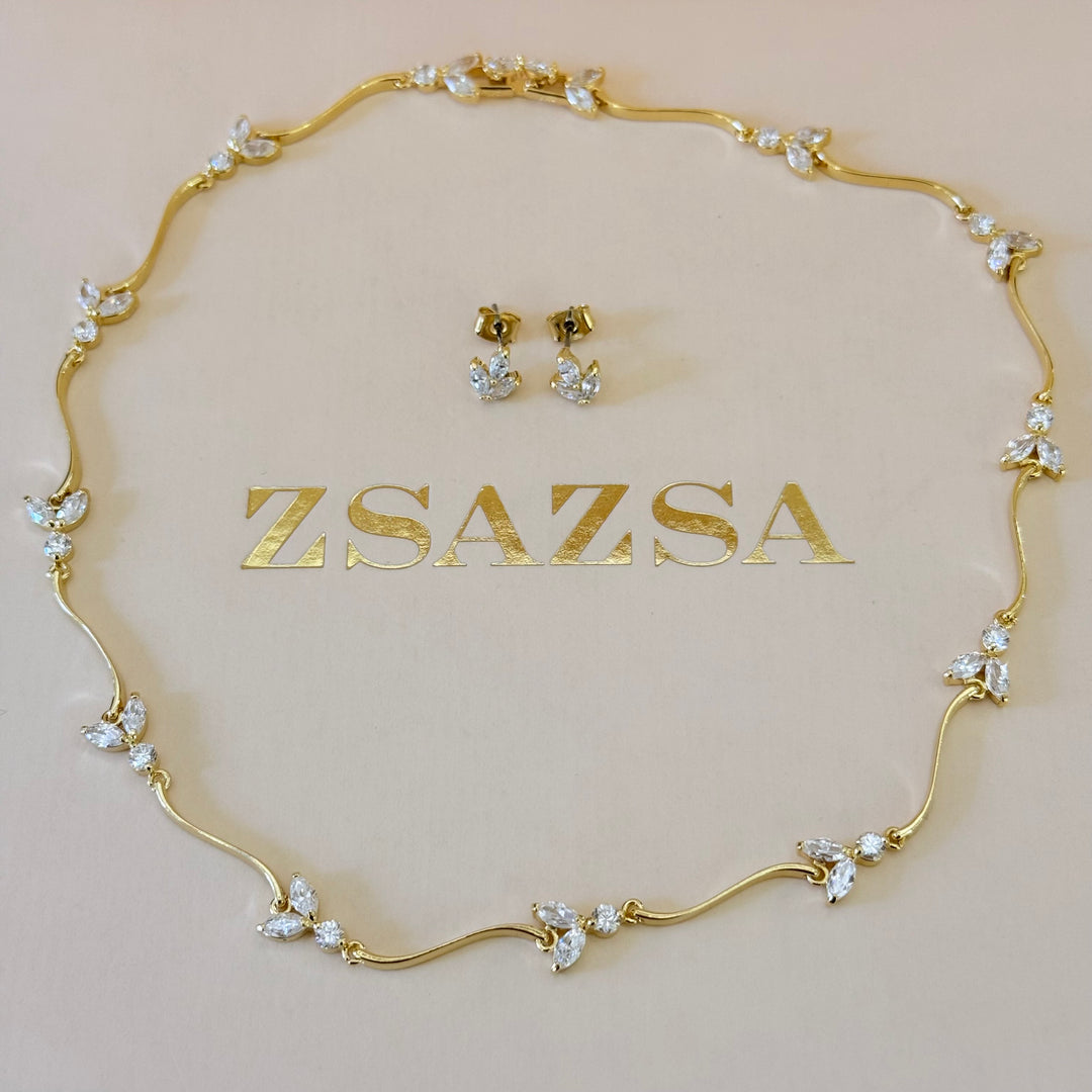 Leaf zircone gold plated set