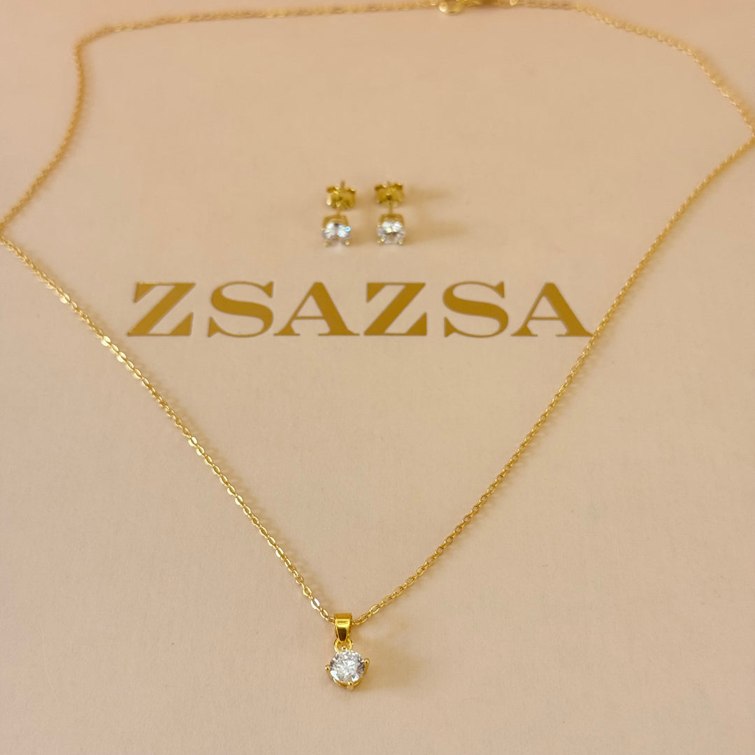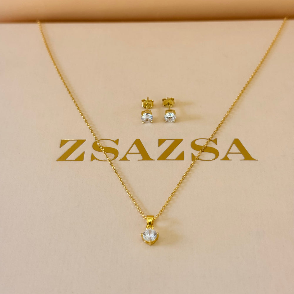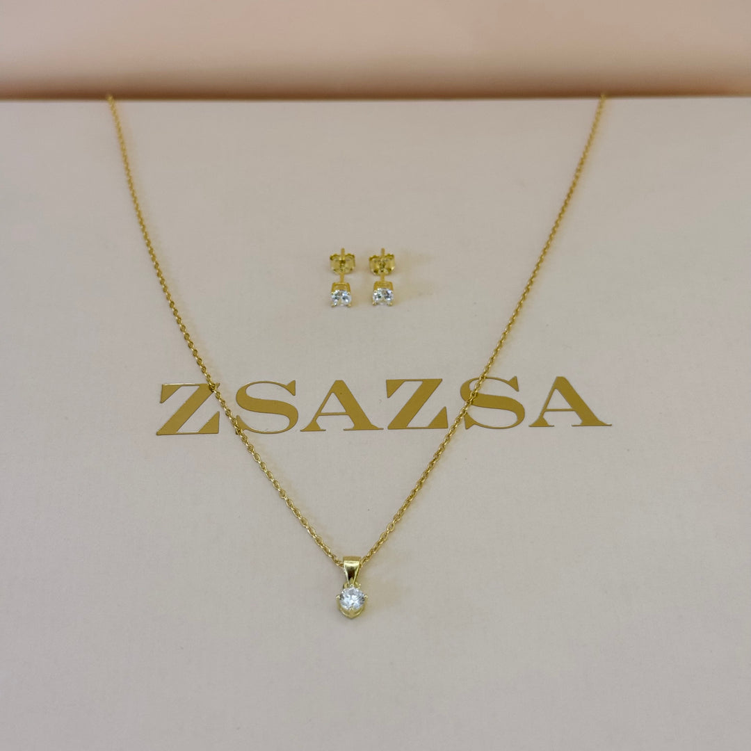 Solitaire zircone sterling silver gold plated set