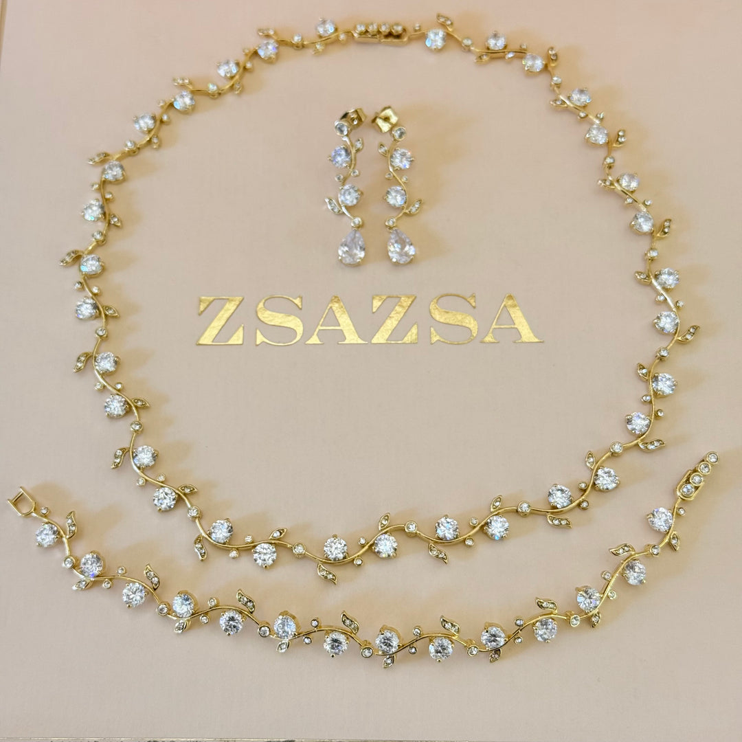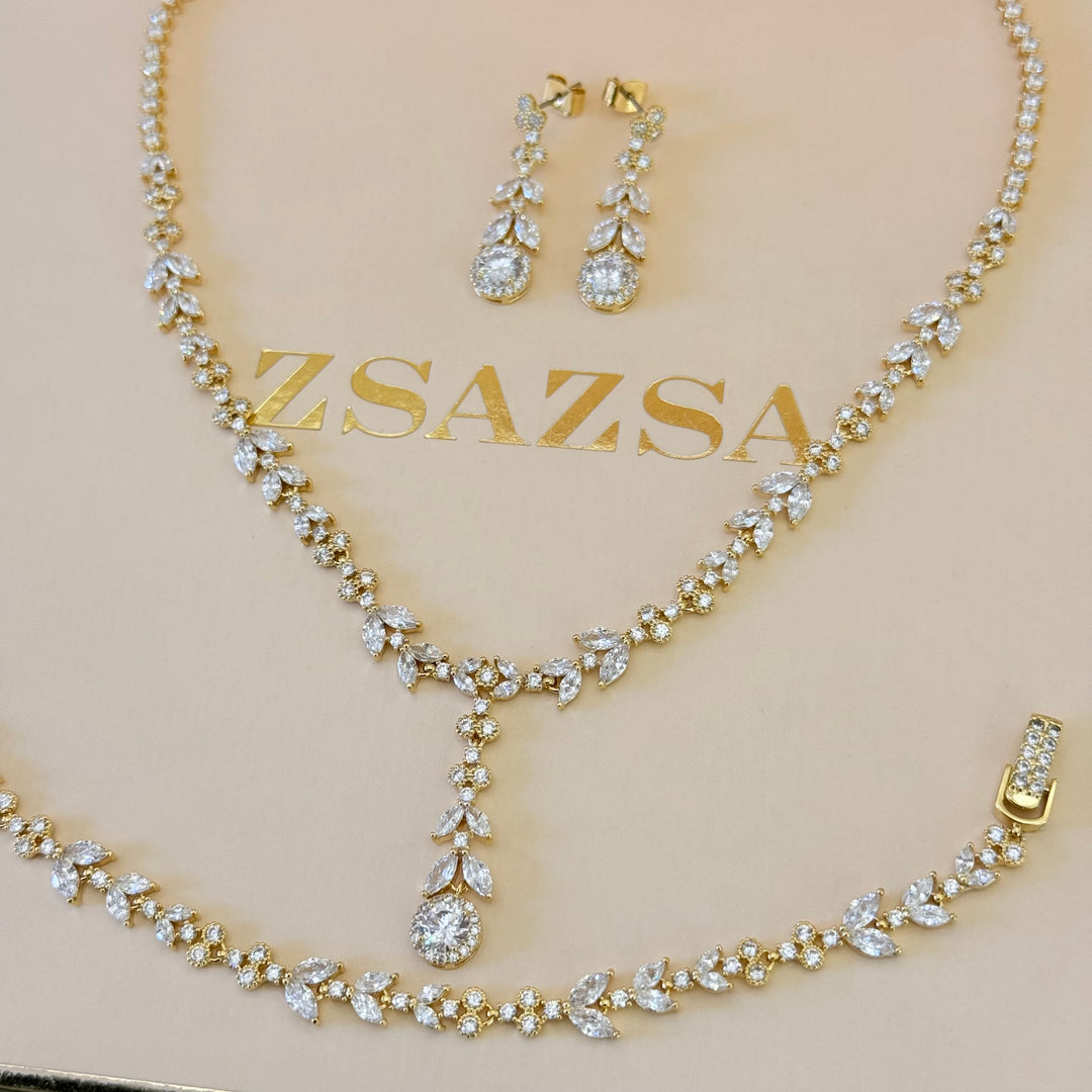 Teardrop and leaves zircone gold plated set