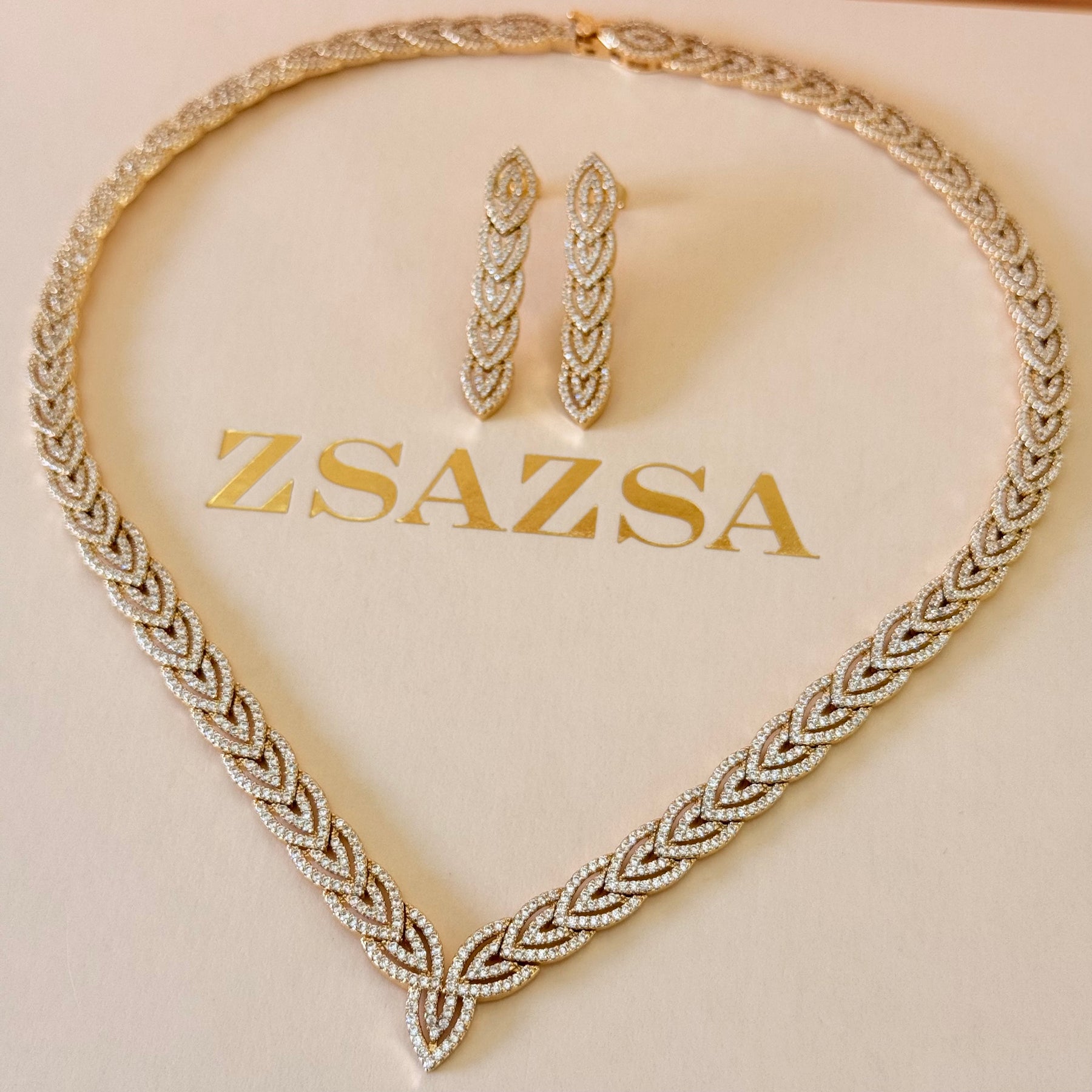 Leaf zircone gold plated set