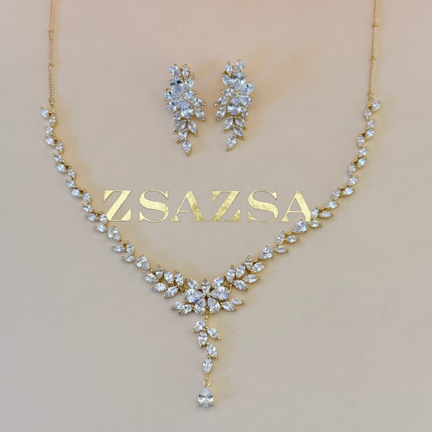 Elevate your special day with the Marquise Zircone Gold Plated Set. Featuring stunning teardrop and marquise zircone stones, this elegant jewelry set is perfect for brides and mothers of the bride and groom. Its timeless design adds a touch of sophistication to any look, making you feel truly radiant.