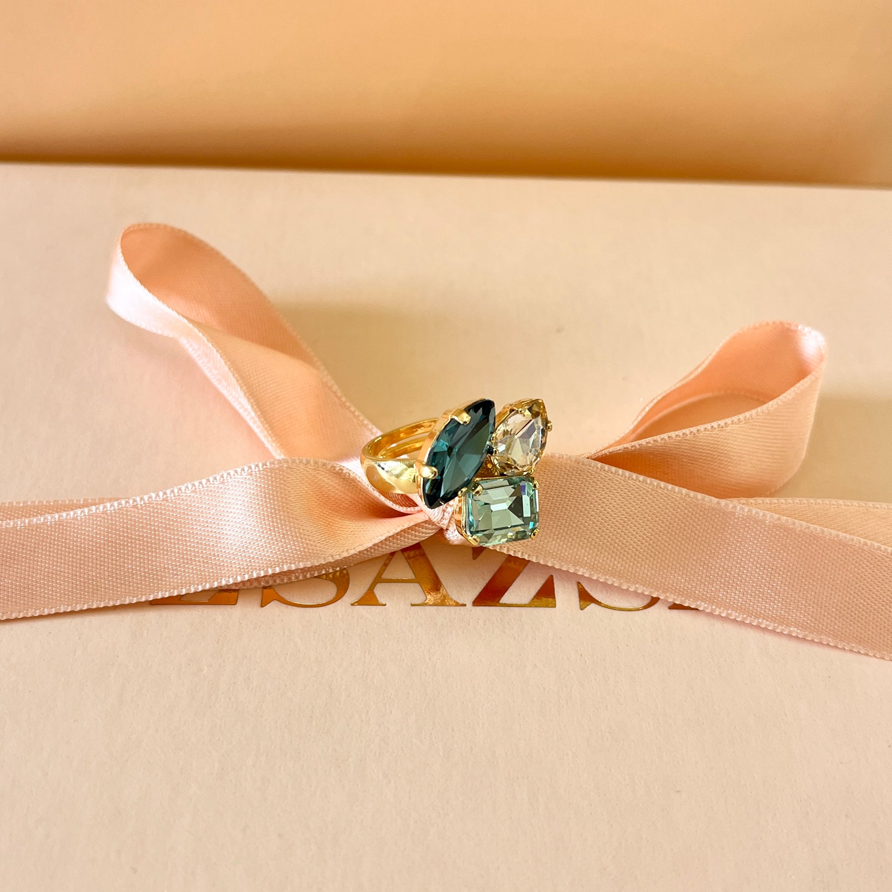 Elevate your style with our stunning Shade of Green Swarovski Crystal Earrings and Ring. These versatile pieces feature dark green, mint, verdemar, and champagne crystals in various shapes, and are dangle earrings and adjustable ring. The gold plated finish adds a touch of luxury to any outfit. Make a statement and shine bright with this gorgeous set.