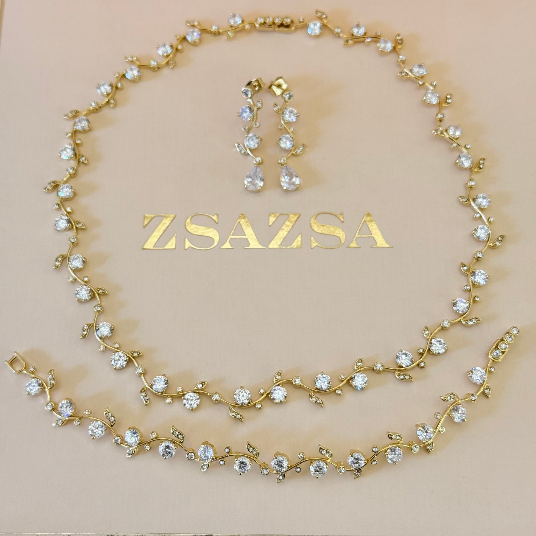 Elevate your special moments with the Teardrop and Leaves Zircone Gold Plated Set. This elegant jewelry set features intricate teardrop and leaf designs, perfect for brides looking to add a touch of romance to their ensemble. Its shimmering zircone accents ensure you feel beautifully radiant on your big day.
