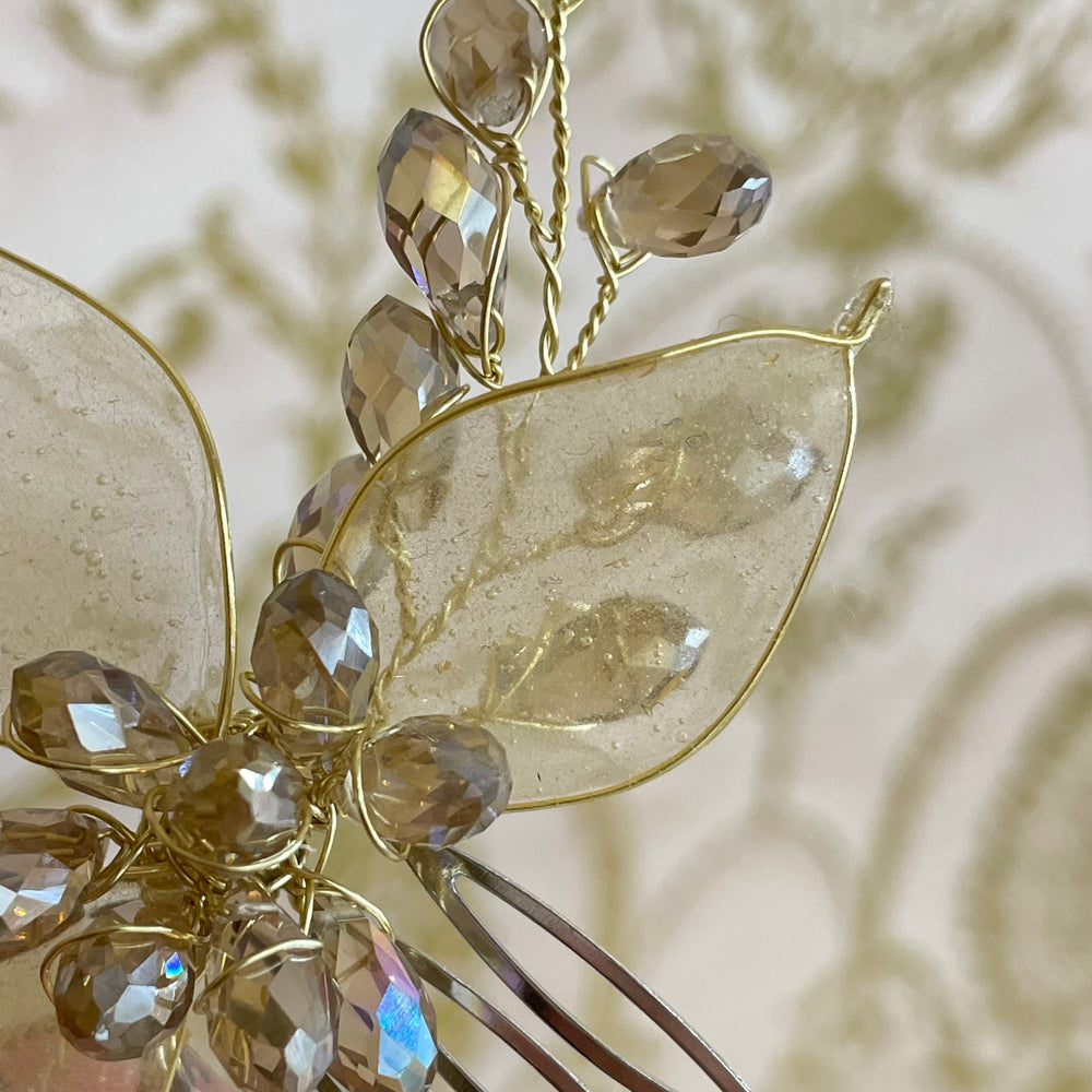Bubble Stone Embellished Leaf Cluster Hair Comb in gold or silver