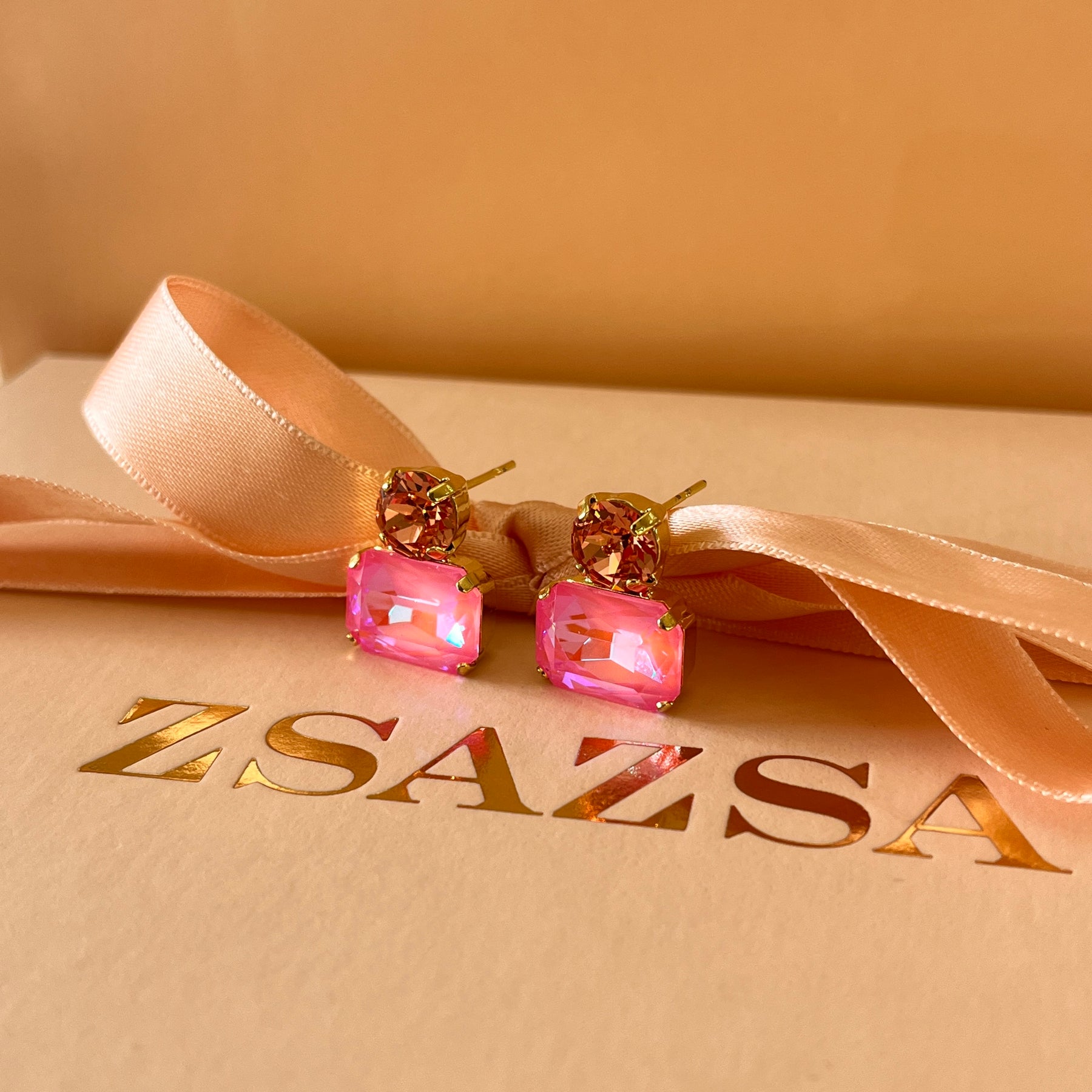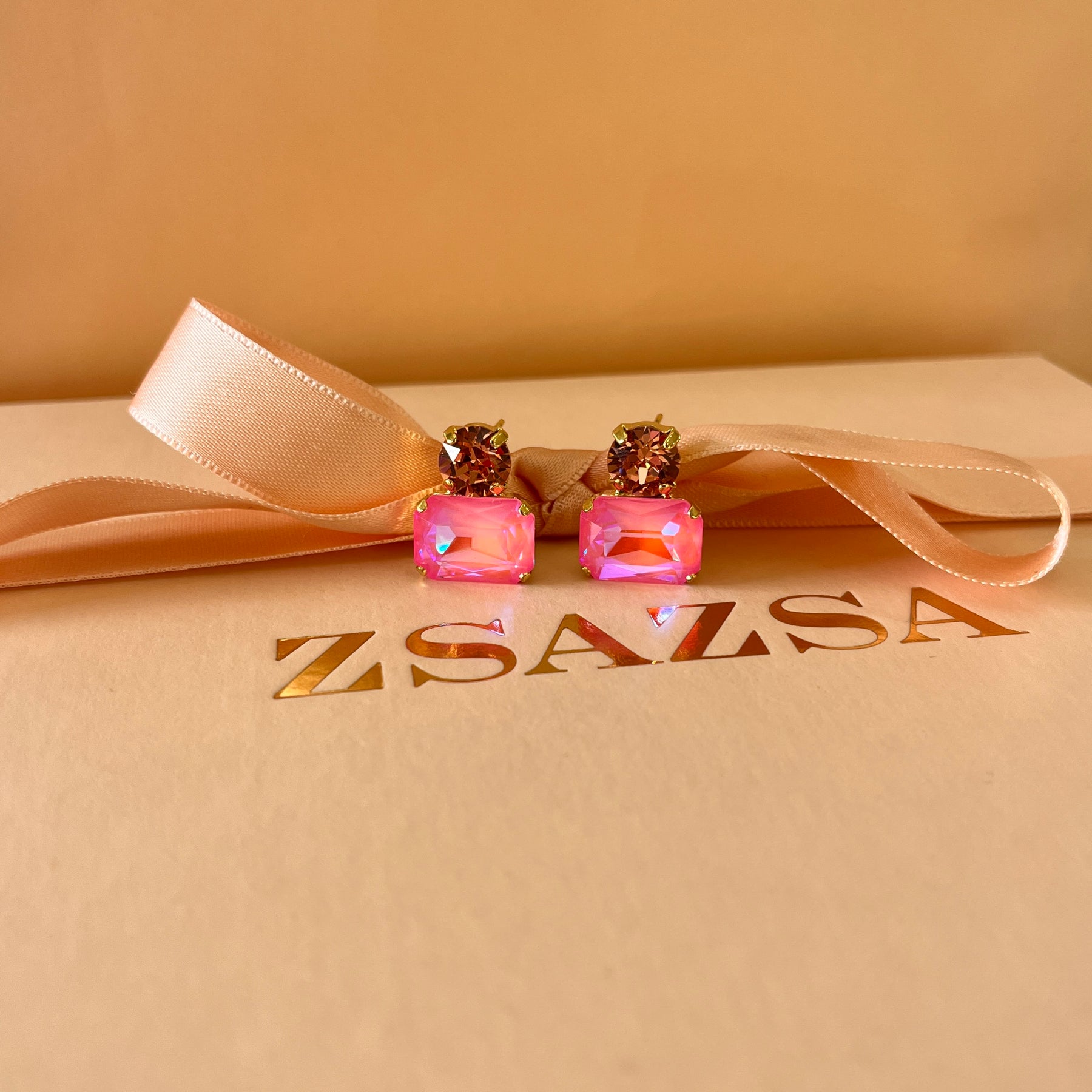 Peach and Pink neon Swarovski crystals earrings