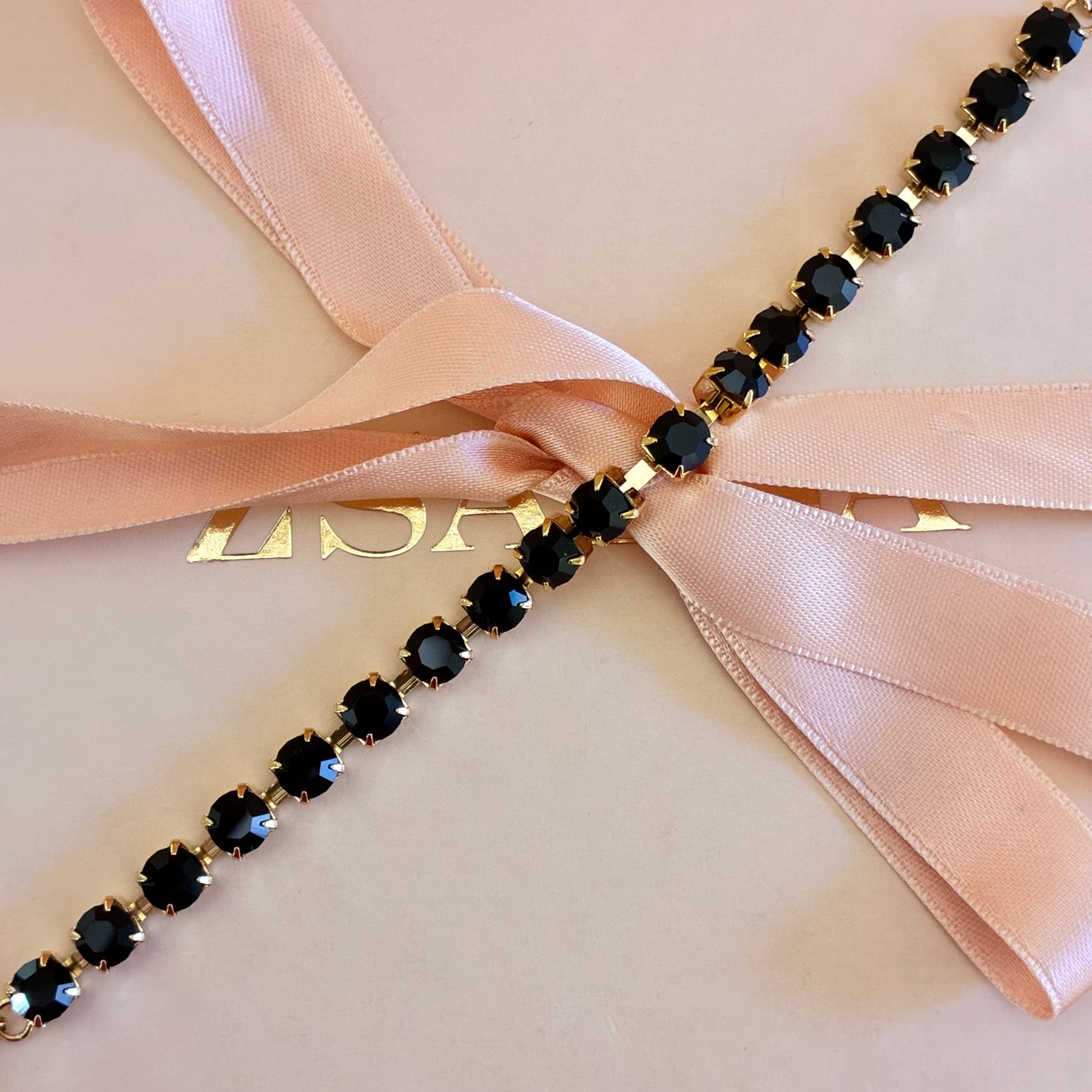 Elevate your style with our Black Preciosa crystals bracelet. The stunning black crystals catch the light perfectly and add a touch of elegance to any look. Perfect for any occasion, this bracelet will make you stand out and feel confident. Upgrade your accessory game now!