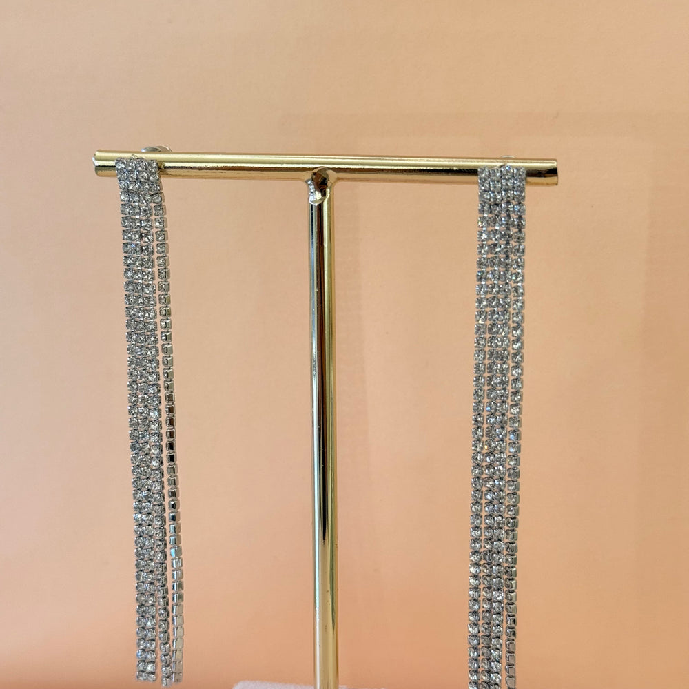 Introducing our 4 fringe zircone silver earrings, expertly crafted with white gold plating for an elegant touch. Perfect for any occasion, these earrings will add a touch of sophistication to any outfit. Upgrade your jewelry collection with these timeless beauties.