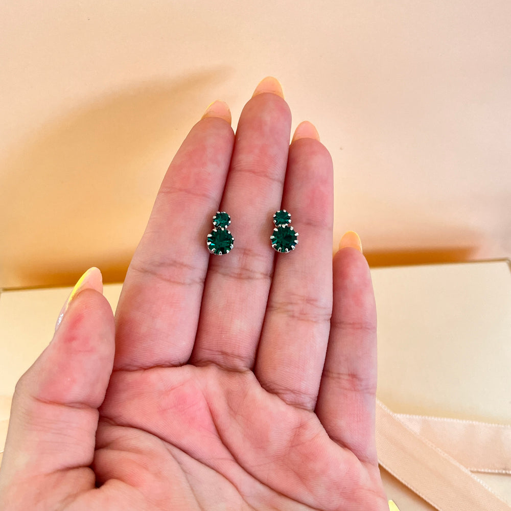 Indulge in the luxurious shimmer of our dark green Preciosa Crystal Studs! These dainty double crystals earrings feature beautiful round dark green preciosa crystals, in white gold plated studs. Perfect for adding a touch of  colour to any outfit. Elevate your style and shine bright with these gorgeous earrings!